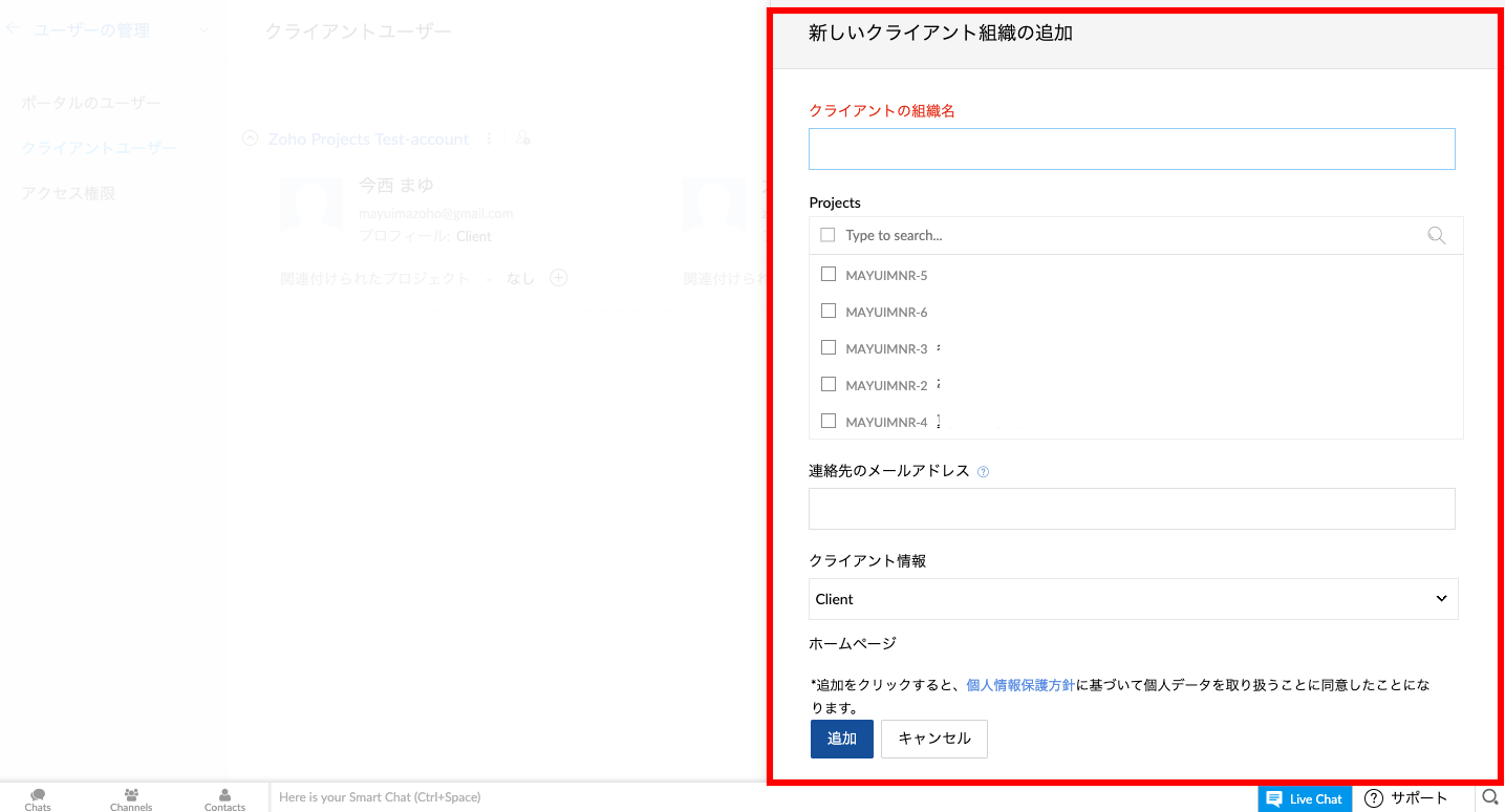【Zoho Projects】プロジェクトにクライアントユーザーを追加したい