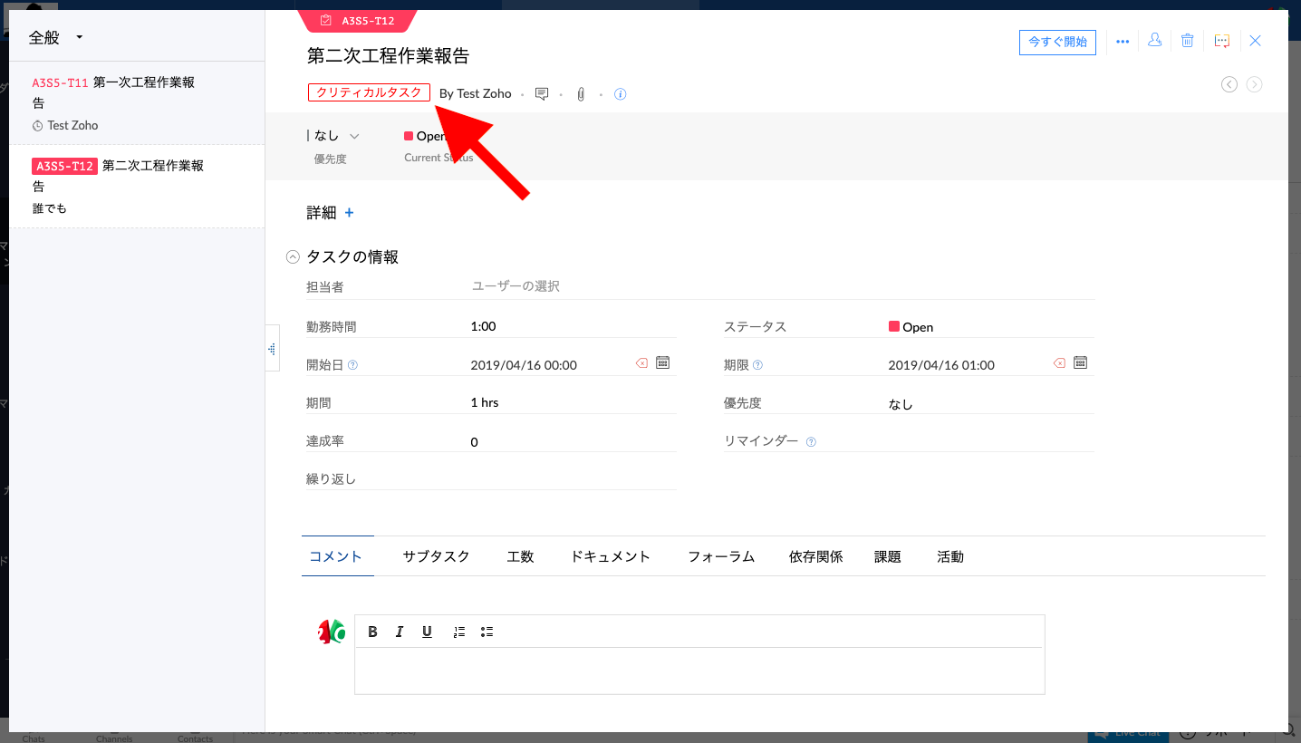 【Zoho Projects】タスクに表示される「クリティカルタスク(Critical Task)」を非表示にしたい