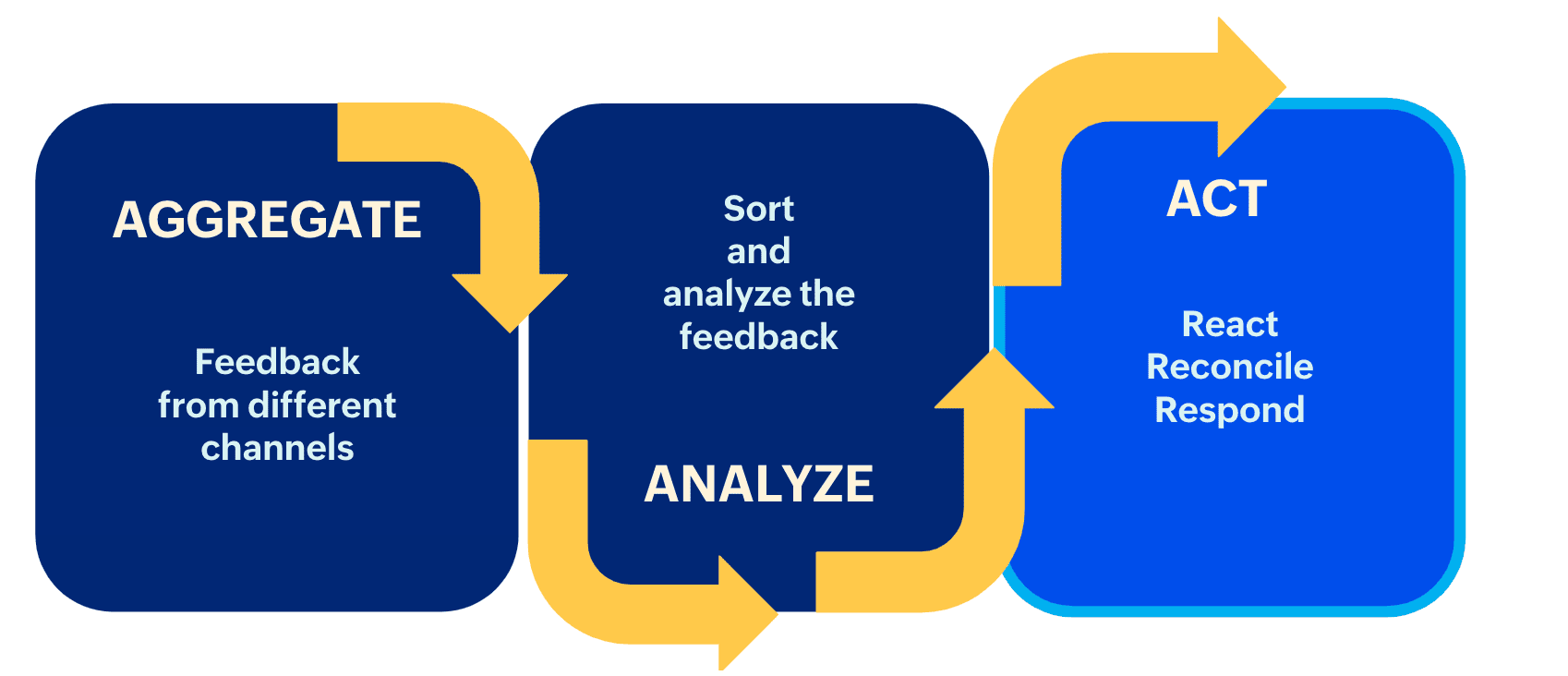 顧客は何らかの対応を期待してフィードバックを提供します。この 「対応」は、苦情に対する反応であったり、問い合わせに対する返答であったり、苦情に対する対応であったりします。どのような場合であれ、それらの対応には期限があり、フィードバックの種類によって異なります。つまり、フィードバック後の対応は、すべての顧客・すべてのフィードバックに対して均一的であることはありえません。