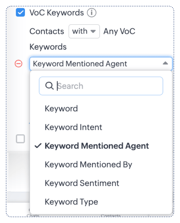 キーワード、キーワードの意図(購入、苦情、問い合わせ、その他)、キーワードに言及した人(担当者または顧客)、キーワードの印象(肯定的、否定的、または中立)、およびキーワードの種類(一般または競合)に基づいてデータをフィルタリングできます。