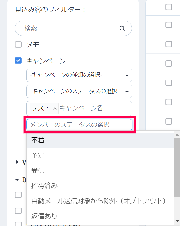これまでのところ、キャンペーンに関する条件では、「メンバーのステータス」項目のみが表示されていました。