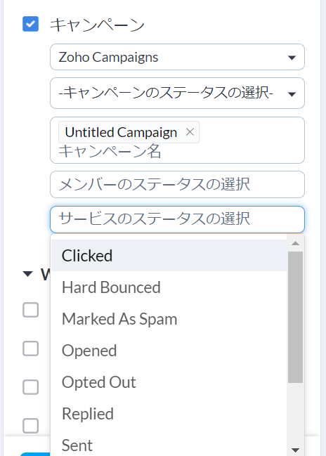 この項目には、受信者の操作や直接の反応に基づいたキャンペーンのステータスオプションが含まれています。