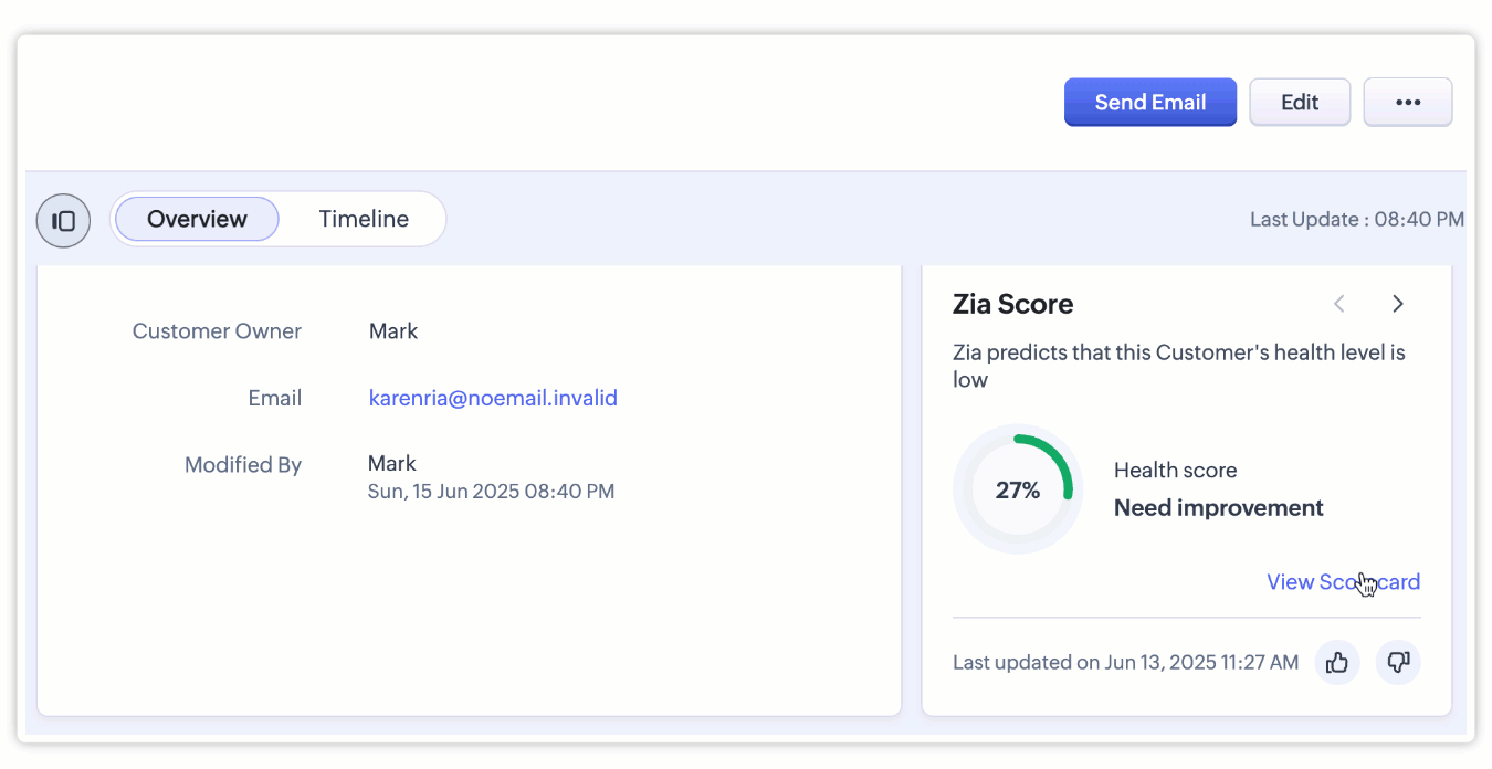 この機能により、ZiaのAI主導の分析情報がすべてのタブに拡張され、Zoho CRMの多様なビジネスニーズへの適応性が向上します。