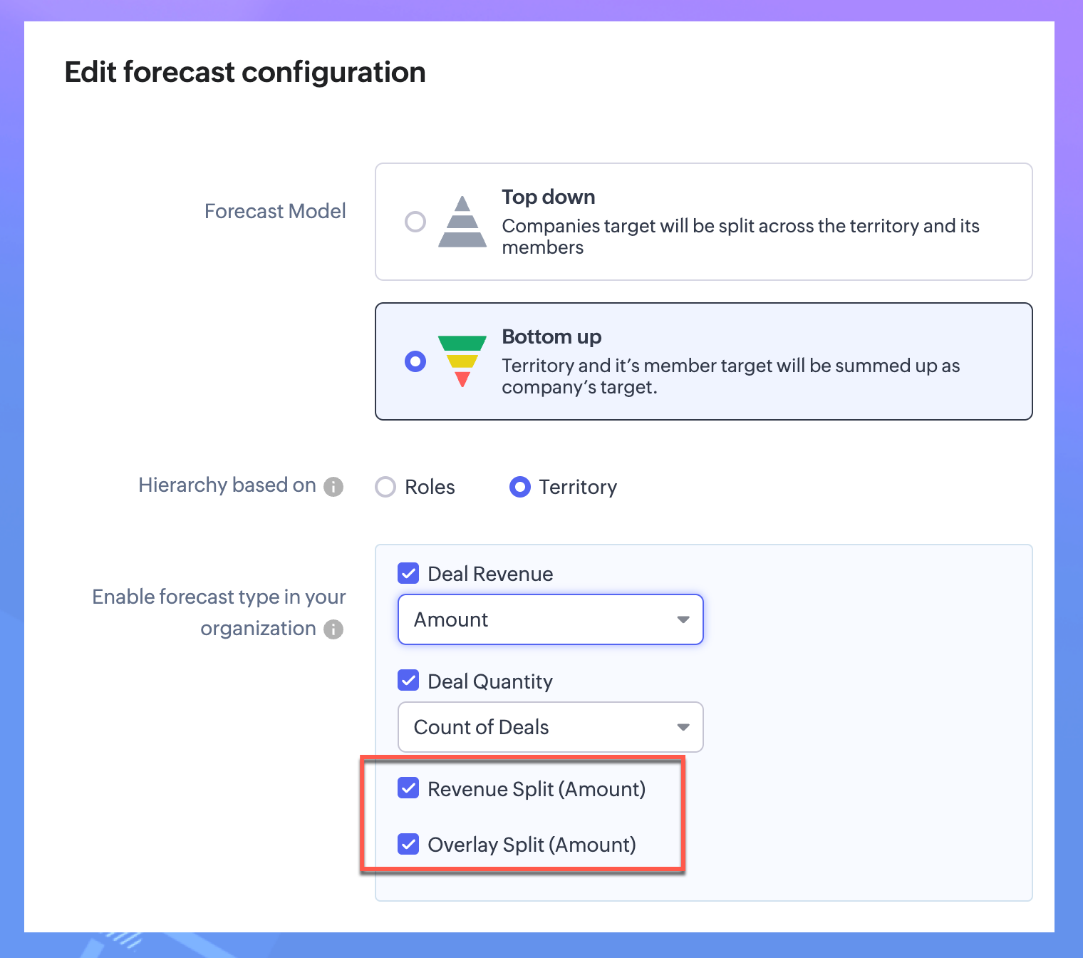 売上予測に、売上額内の配分や売上額を超える配分を適用することで、商談の成約に貢献したチームメンバー間で公正に報酬を配分することができます。