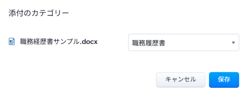 - 「添付のカテゴリー」の選択画面が表示されるので、一覧から該当のカテゴリーを選び「保存」をクリック