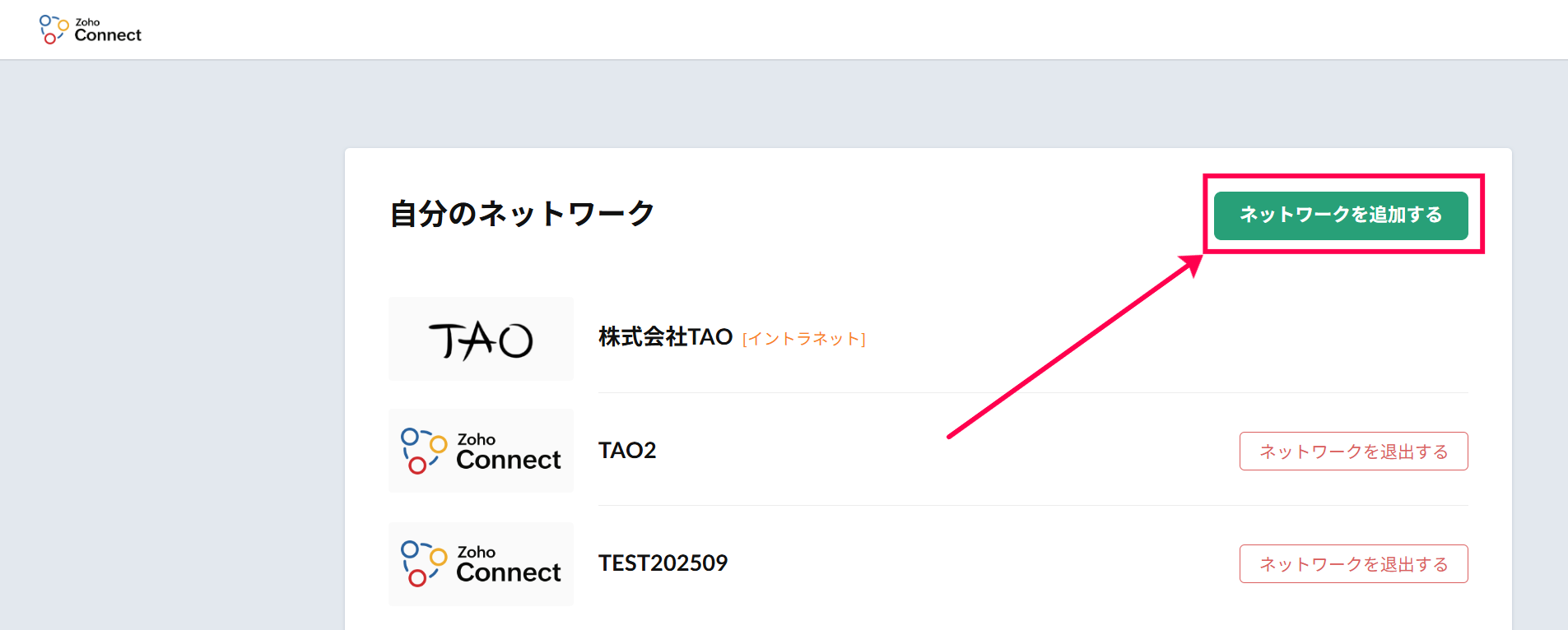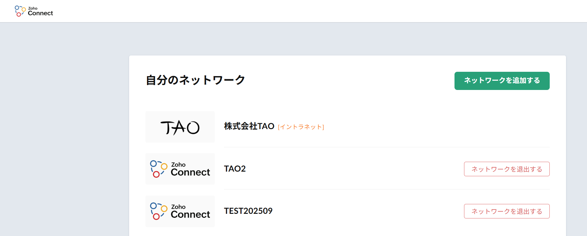 【Zoho Connect】ネットワークの切り替え/追加/削除