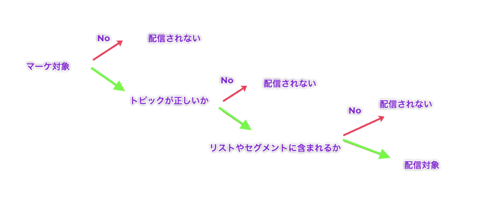 各連絡先がキャンペーンの配信対象となる条件を図で表すと以下のようになります。