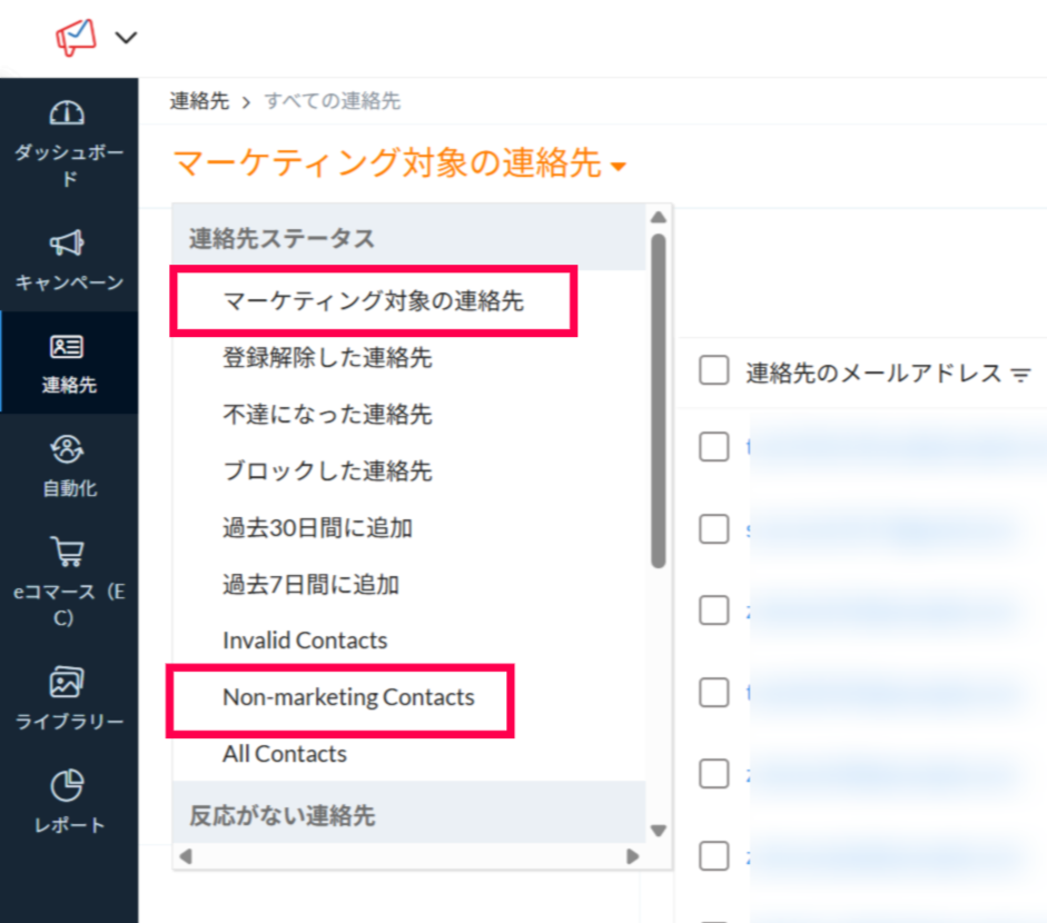 マーケティング対象外の連絡先は、「Non-Marketing Contacts」ビュー内に表示されます。