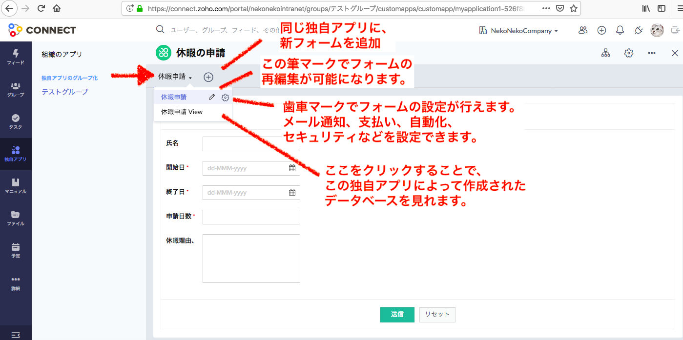【Zoho Connect】独自アプリ(基本編:フォームの作成)