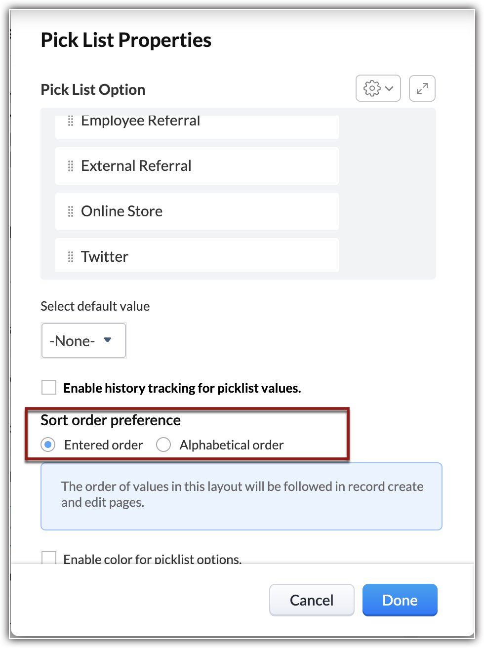 【Zoho CRM】選択リスト項目に関するアップデートのお知らせ:並び替え順の設定ができるようになりました。
