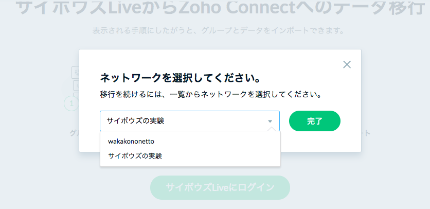 3)サイボウズ側のAPI制限のより、大量データをお持ちの場合は、移行のプロセスで上限に引っかかりデータの移行に不足が生じる場合があります。その場合は、support@zohoconnect.comまでメールにてご連絡ください。その際に、問題が発生したネットワーク名とネットワーク管理者を教えていただけるとスムーズです。
