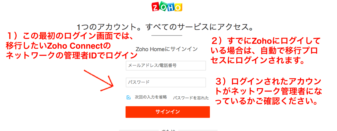 1)ネットワーク管理者のアカウントで移行ページにログインしているか