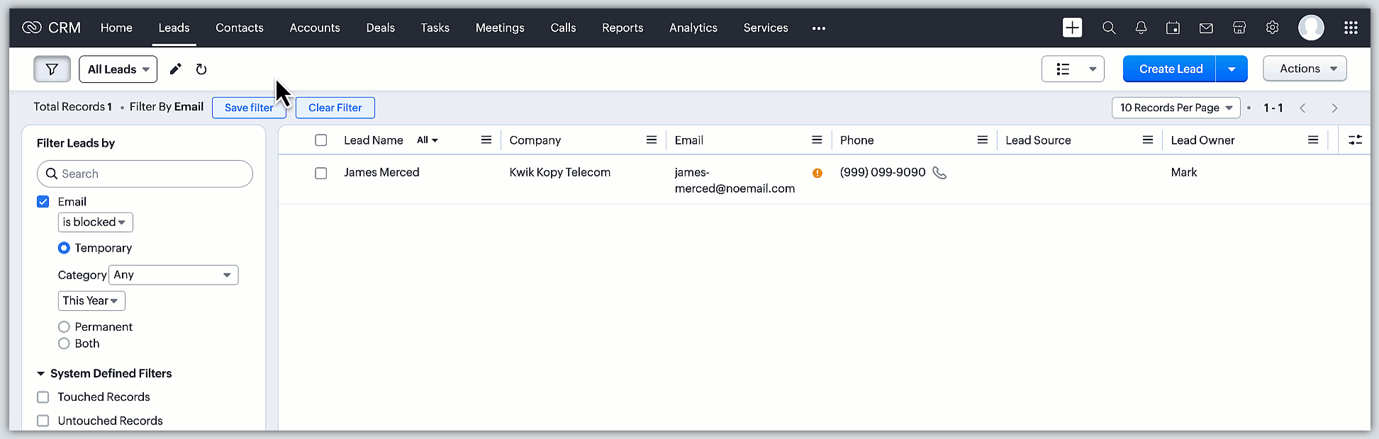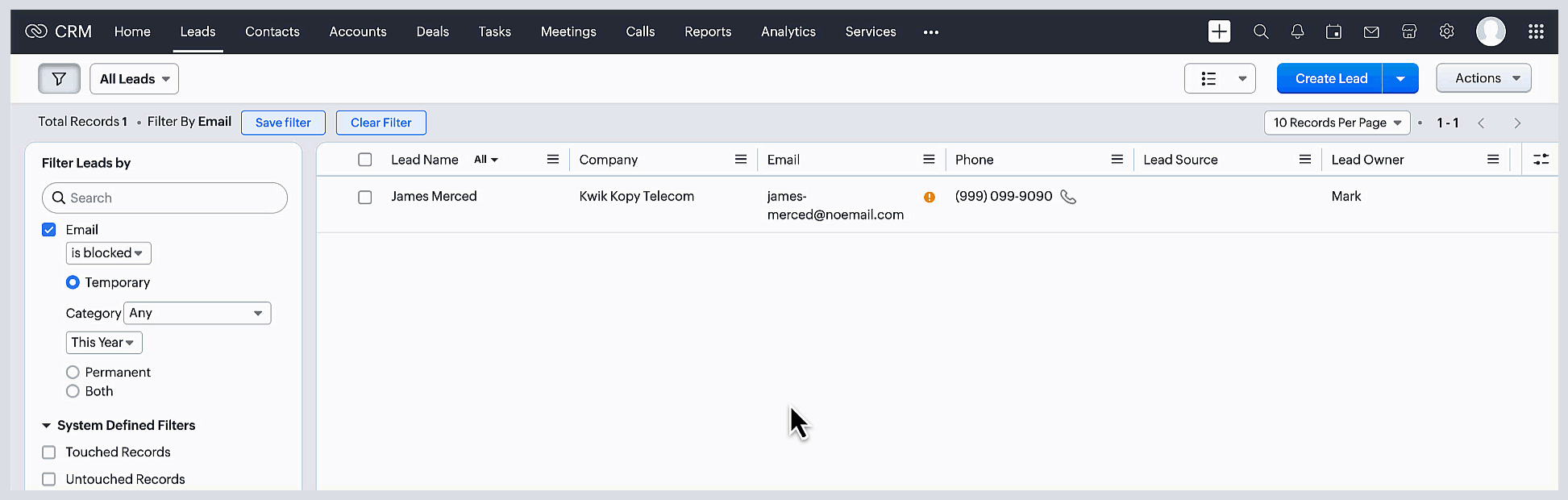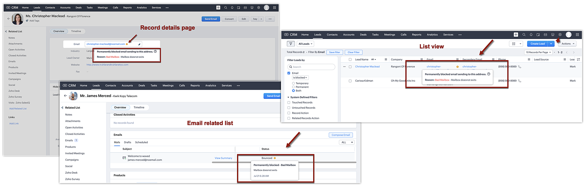 - 5回ブロックを解除すると、Zoho CRMはそのメールアドレスを恒久的にブロックします。