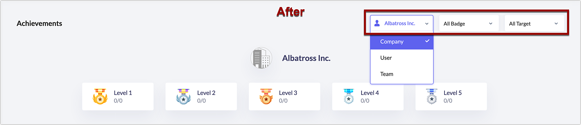 これまでは、まずサーバーからユーザーやチーム、会社単位でフィルタリングが行われ、その上でバッジやトロフィーに関するフィルターが設定されていました。