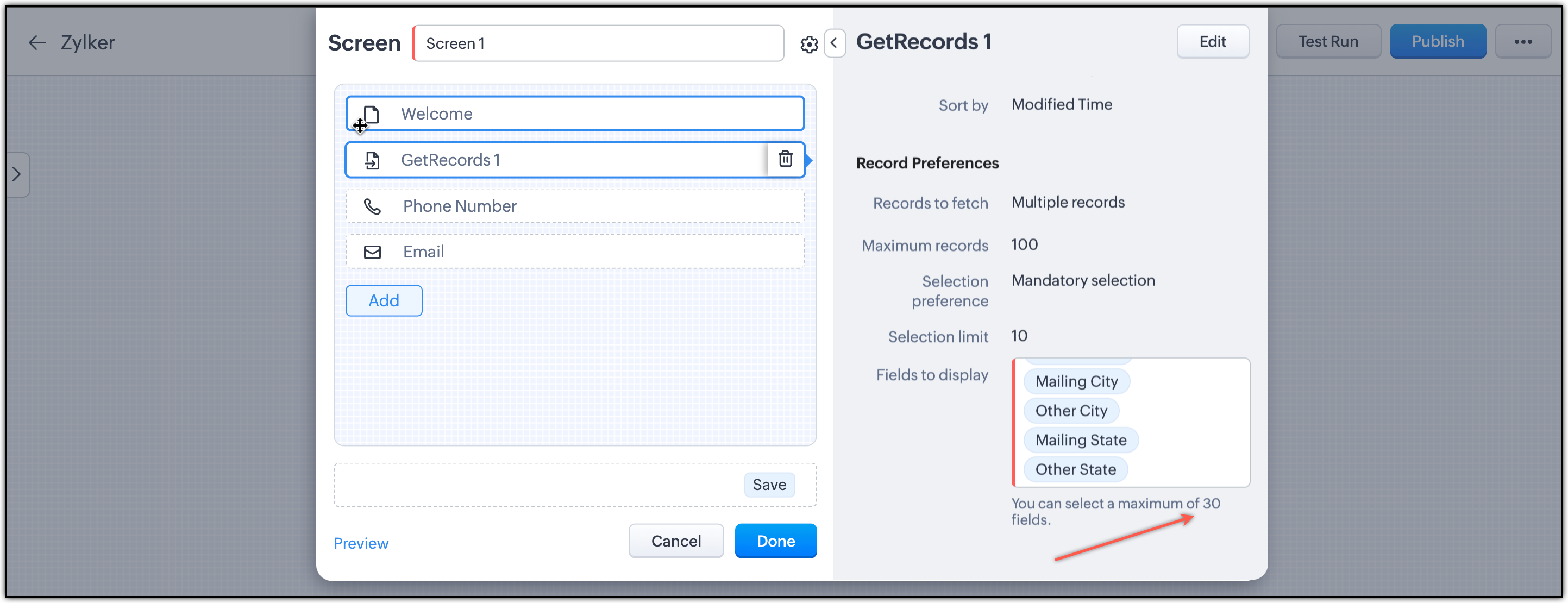 -- 「データ取得」を、表示設定の異なる複数の画面で再利用できるようになりました。たとえば、同じ 「データ取得」要素を使用して、ある画面では姓項目のみを表示し、別の画面では電話番号項目を表示するなど、状況に応じて使い分けることができます。