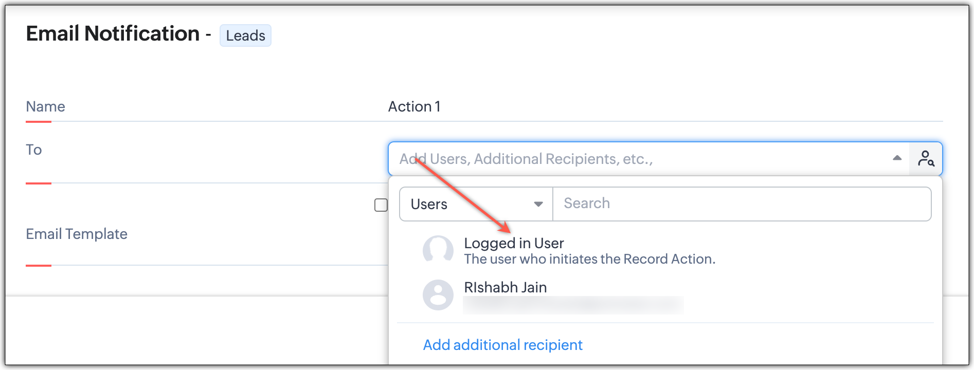 メール通知の「ログイン中のユーザー」変数