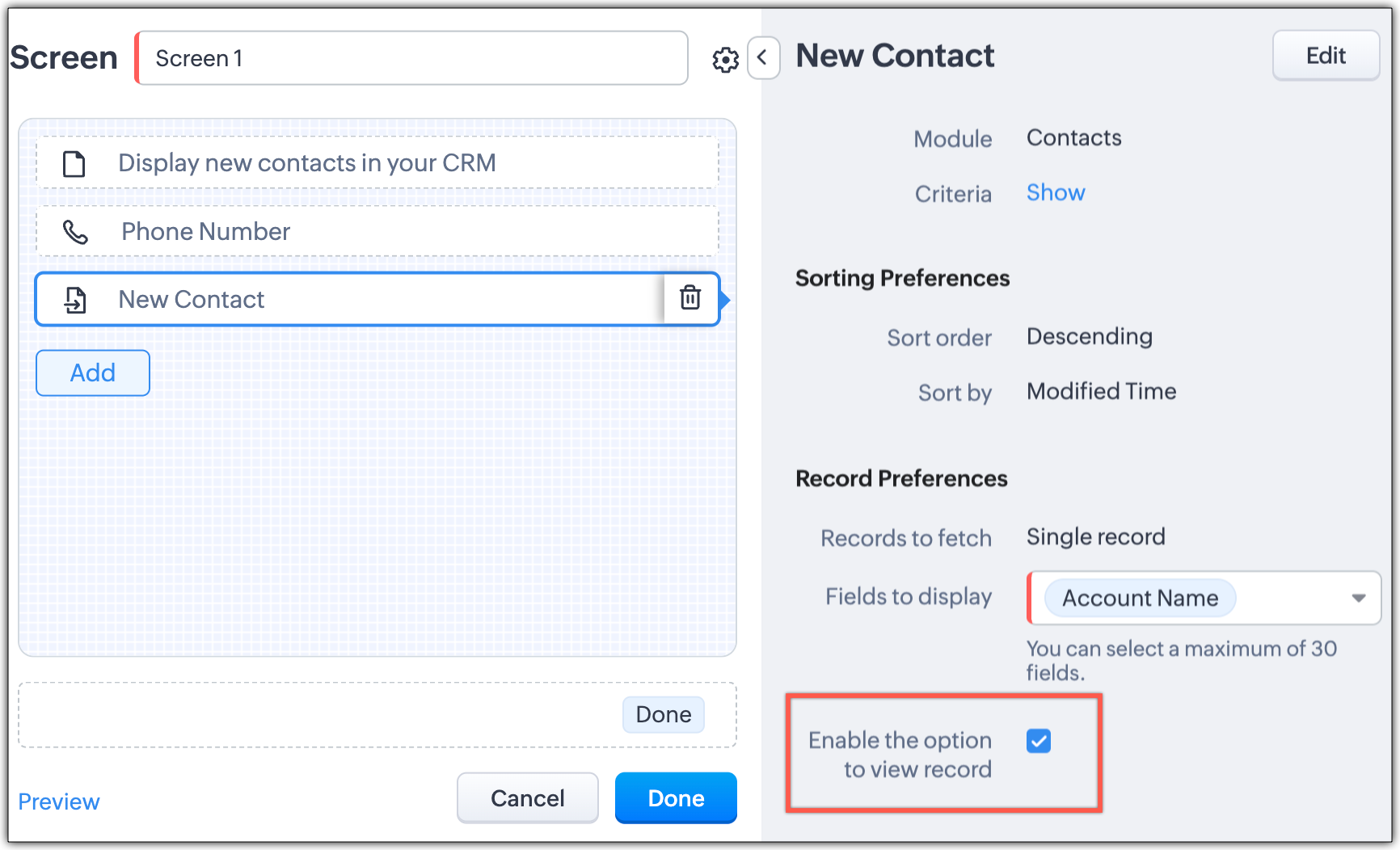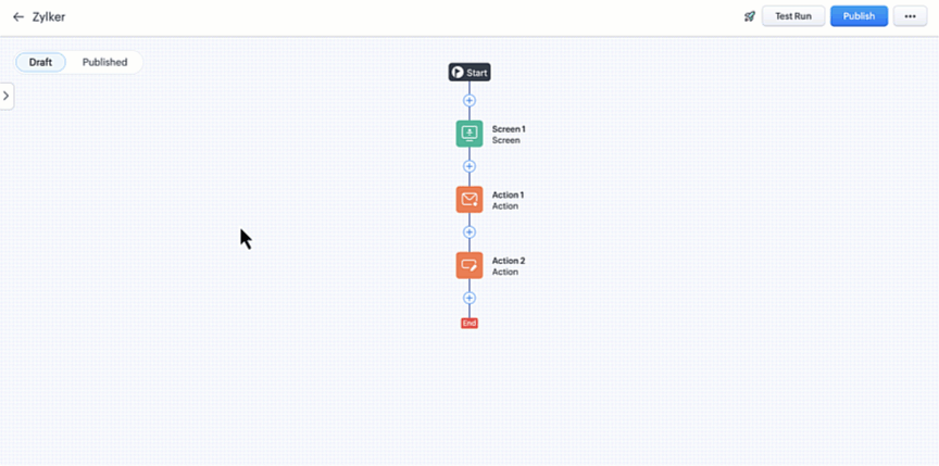 ユーザーは、画面要素ビルダーの左パネル内で直接簡単にボタンの順番を変更できます。更新された順番は、設定中にすぐに右側に反映されます。これにより、管理者は設定を確定する前に、変更をリアルタイムで視覚化することができます。
