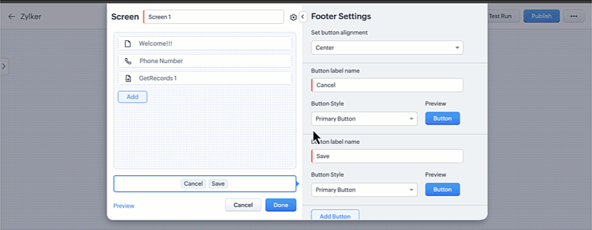 画面要素のビルダー内でボタンの並び替えができるようになりました。頻繁に使用する処理に優先順位をつけたり、簡単なナビゲーションを提供するため、この機能アップデートにより、ユーザーはボタンの配置をよりよく制御できるようになり、画面全体の一貫性が確保されます。
