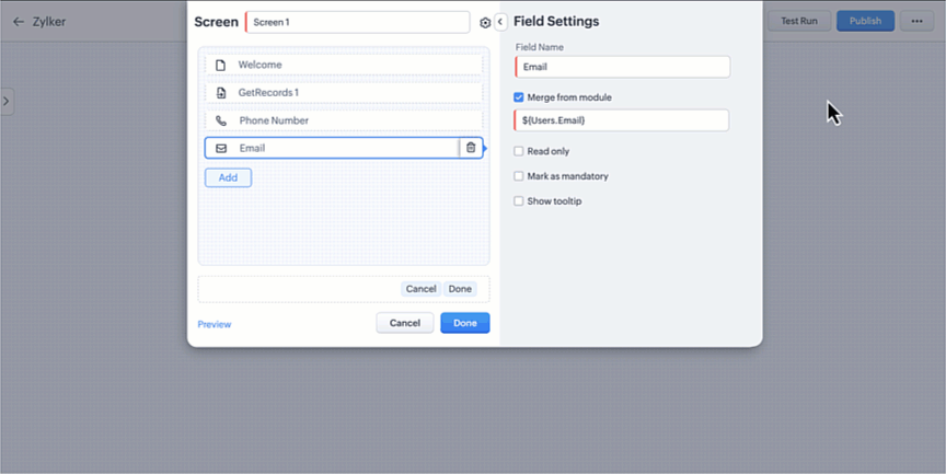 「データ取得」は「画面」要素と緊密に結びついており、管理者の柔軟性が制限されていました。ユーザーが「データ取得」を画面に表示したり、「処理」や「分岐」の中で使用したりしたくない場合、そのデータを利用するためにこれらの要素の1つに「データ取得」を配置し、処理で変数を使用することが強いられます。さらに、「データ取得」は複数の画面で再利用できますが、同じ表示設定が普遍的に適用されるため、さまざまなユースケースのためのカスタマイズが制限されます。
