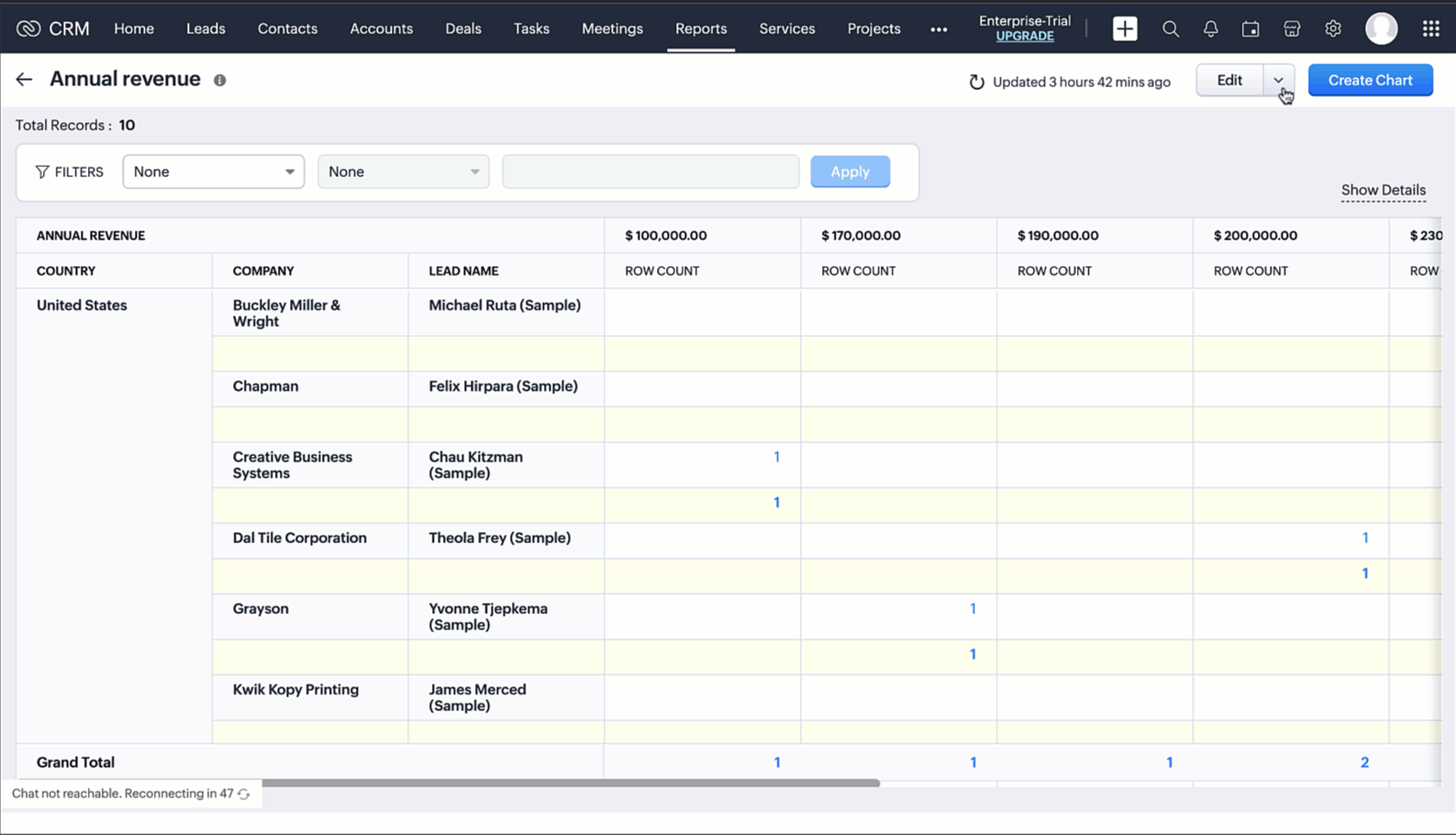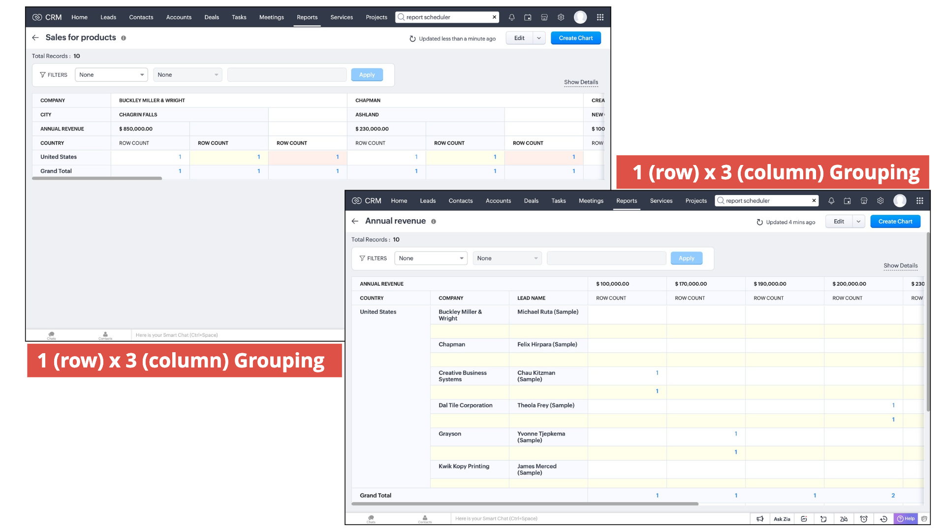 これまでZoho CRMのレポートタブでは、2(行)x2(列)のグループ化しか対応していませんでした。