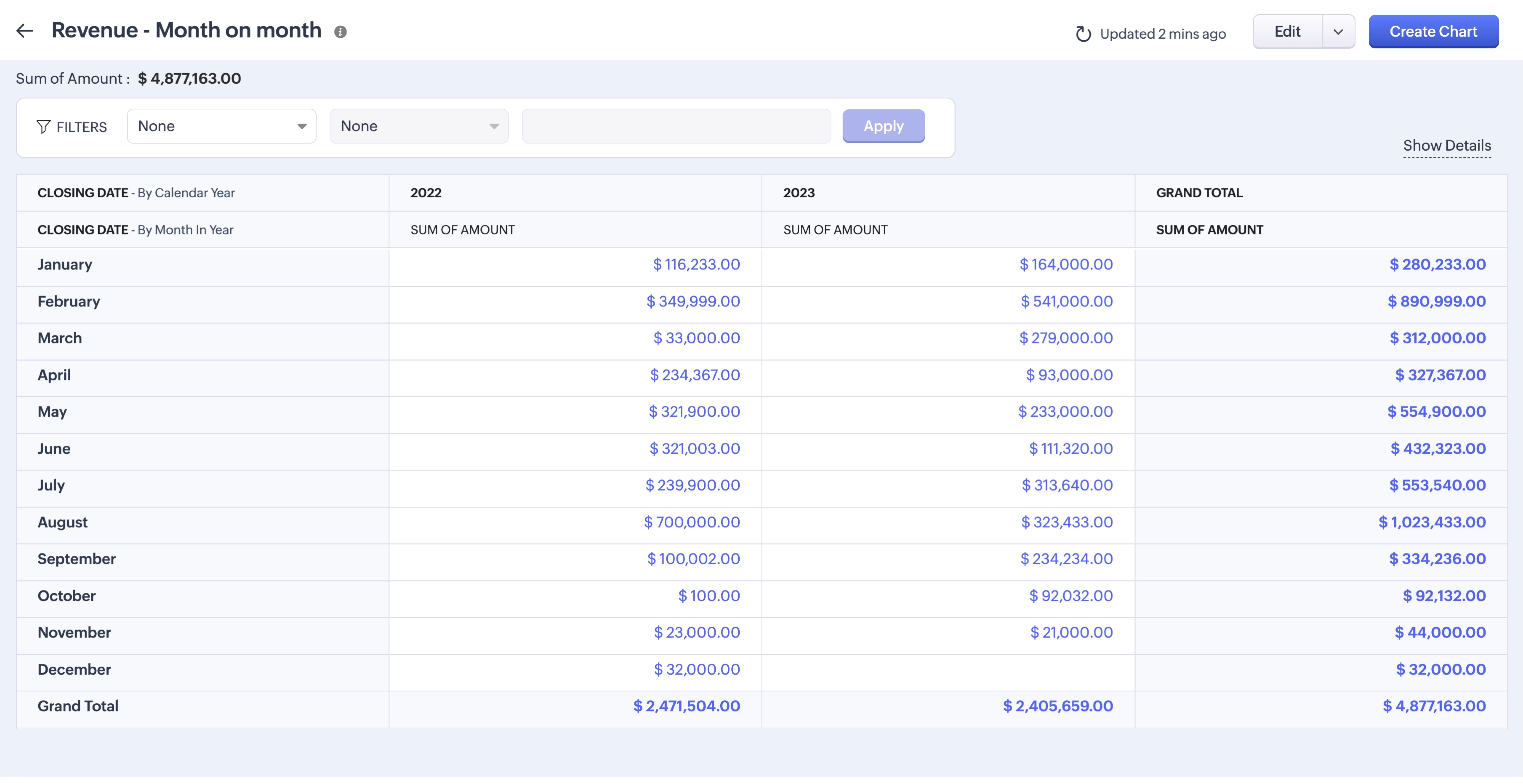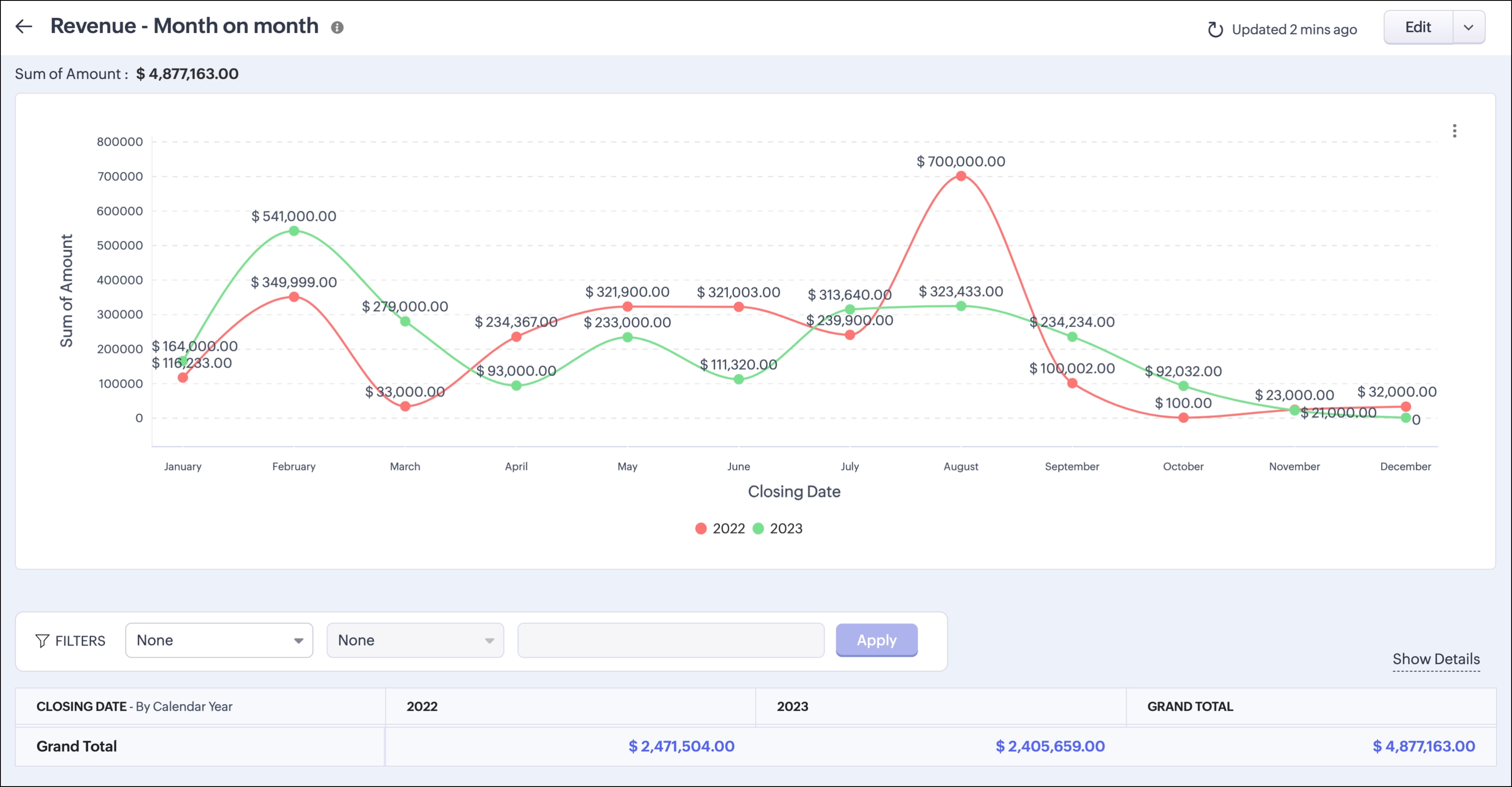 以下は、過去2年間の収益を「年の月別」に比較した例です。