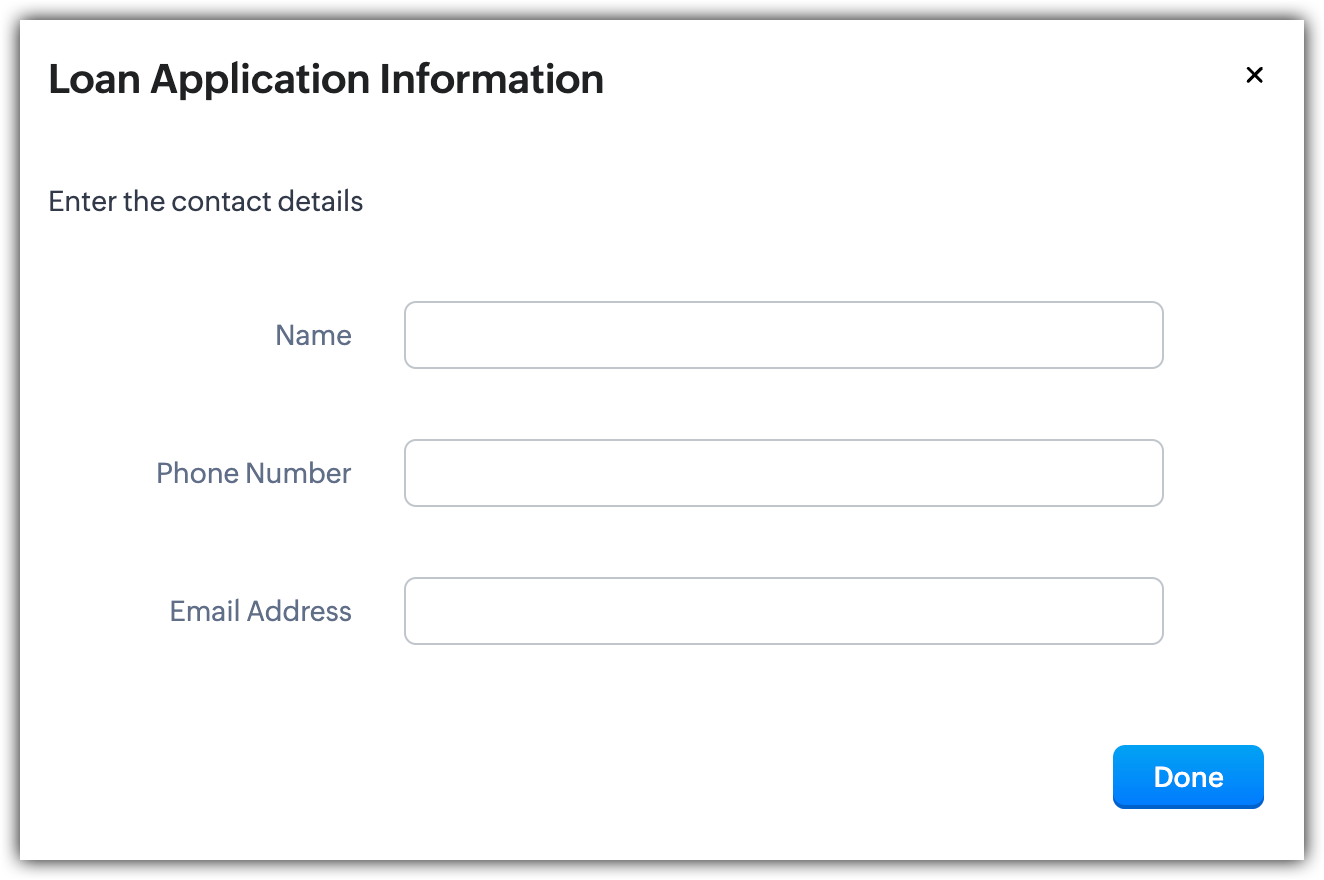 そのため、営業担当者にローンを申し込む顧客の連絡先名、電話番号、メールアドレスを入力させるための、「ローン申し込み」というキオスクを作成しました。