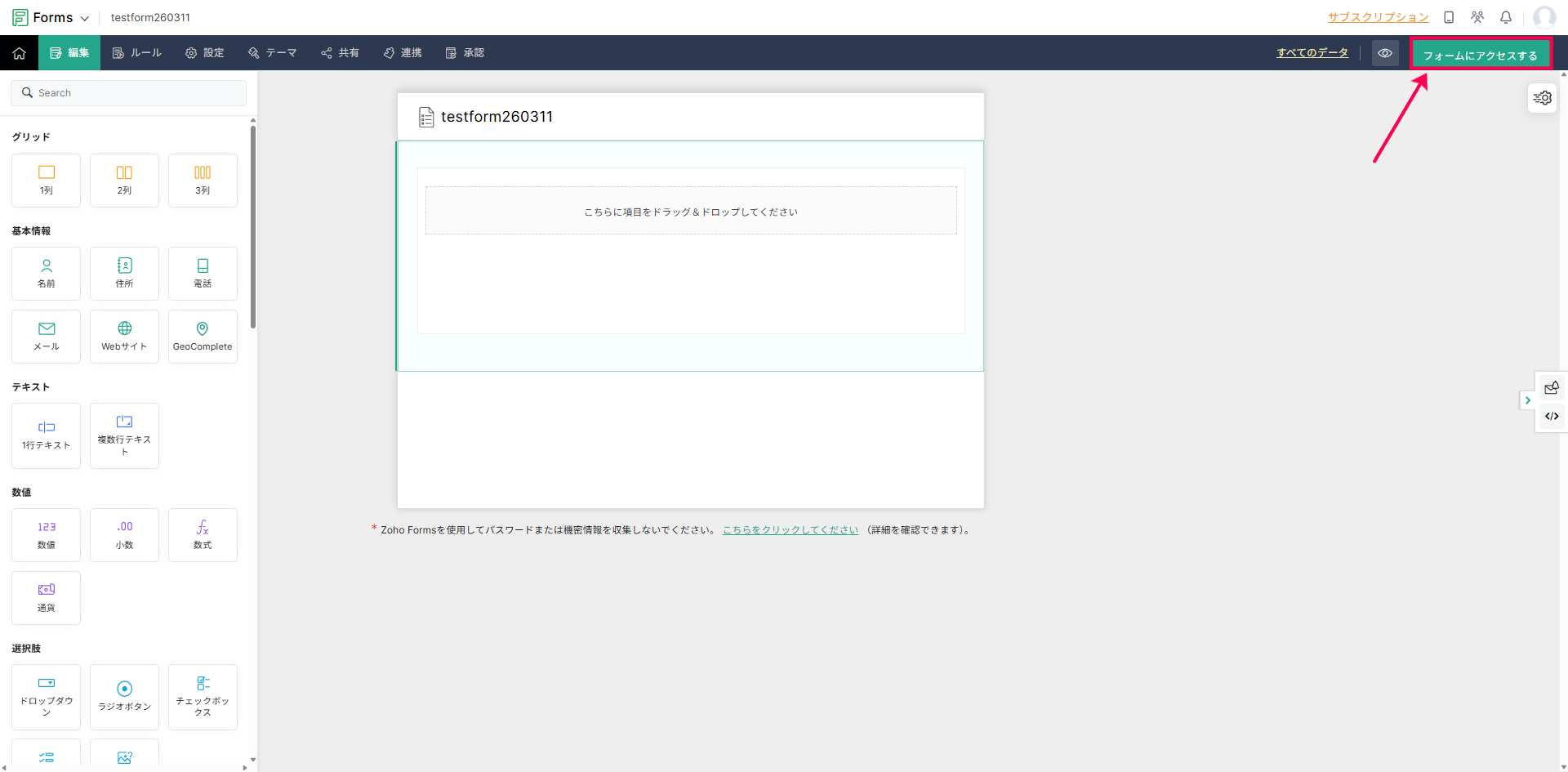 フォームにアクセスする