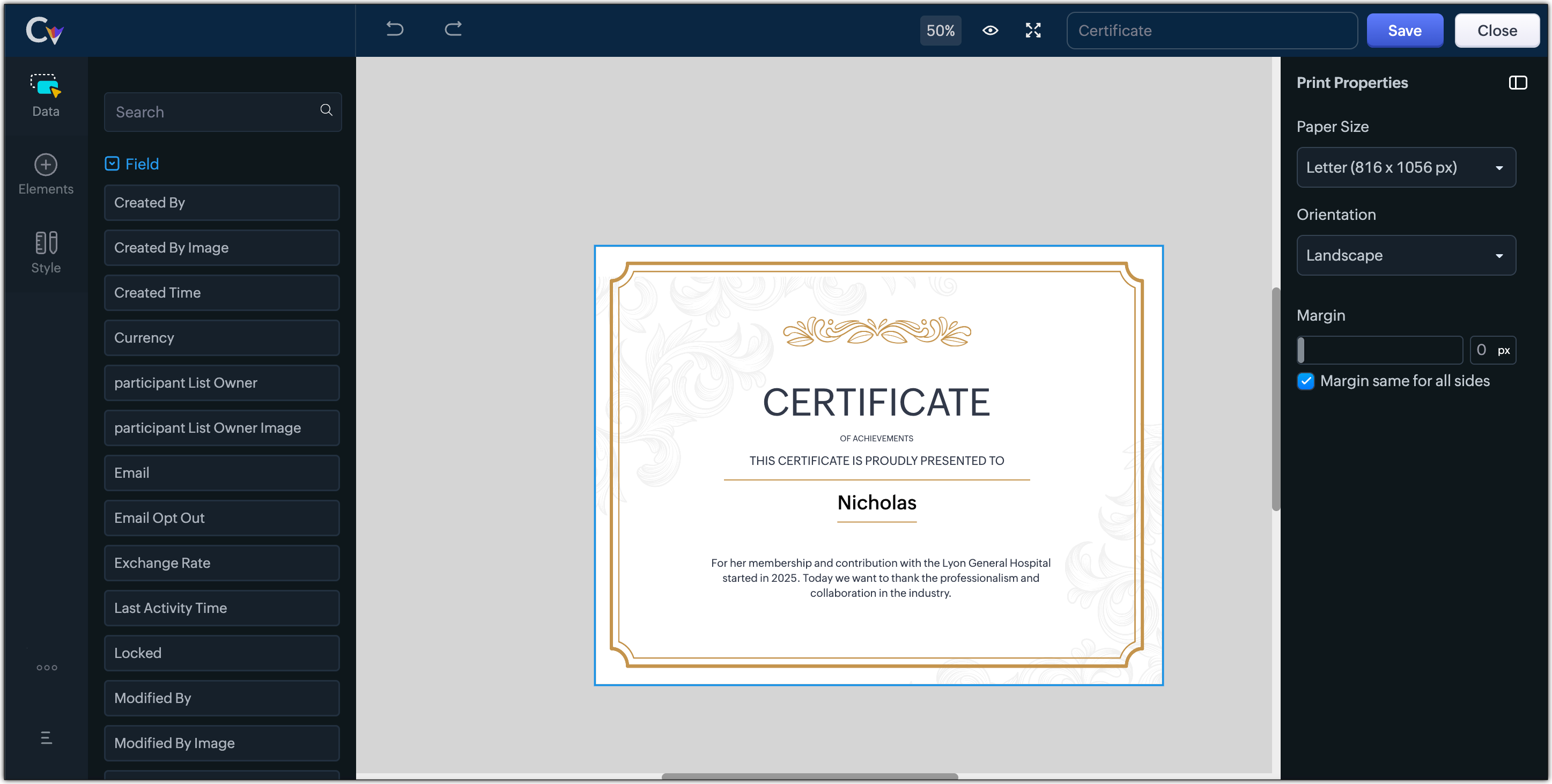 配送用ラベルの印刷、パーソナライズされたフォームの作成、特定のデータ情報の文書化など、あらゆる場面でこの機能を活用できます。CRMから直接デザイン、カスタマイズ、印刷を柔軟に行うことができます。