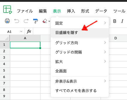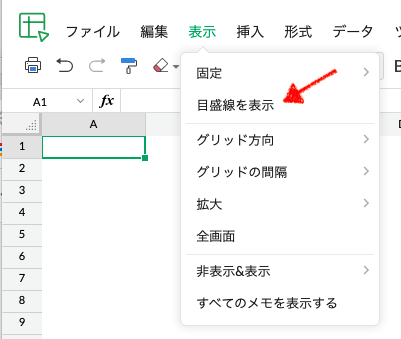 もとに戻すときは、表示>目盛線を表示 をクリックして目盛線を表示できます。