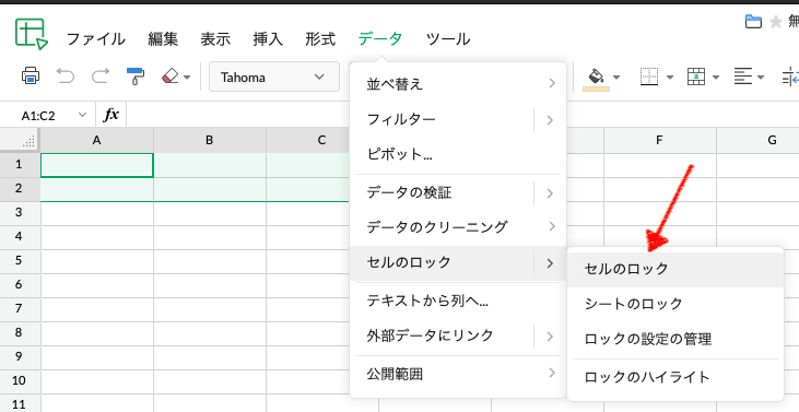 データ>セルのロック をクリックする