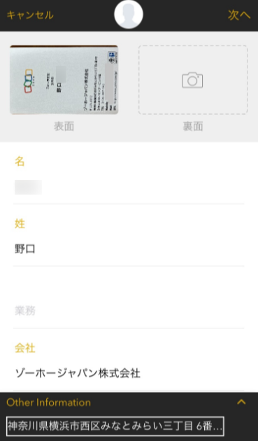 ②名刺のデータが自動で解析されます。