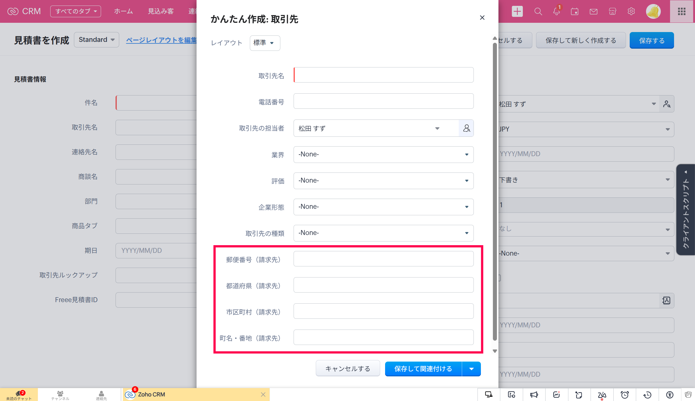 【Zoho CRM】ルックアップ項目でデータを新規追加する際のレイアウトを変更したい