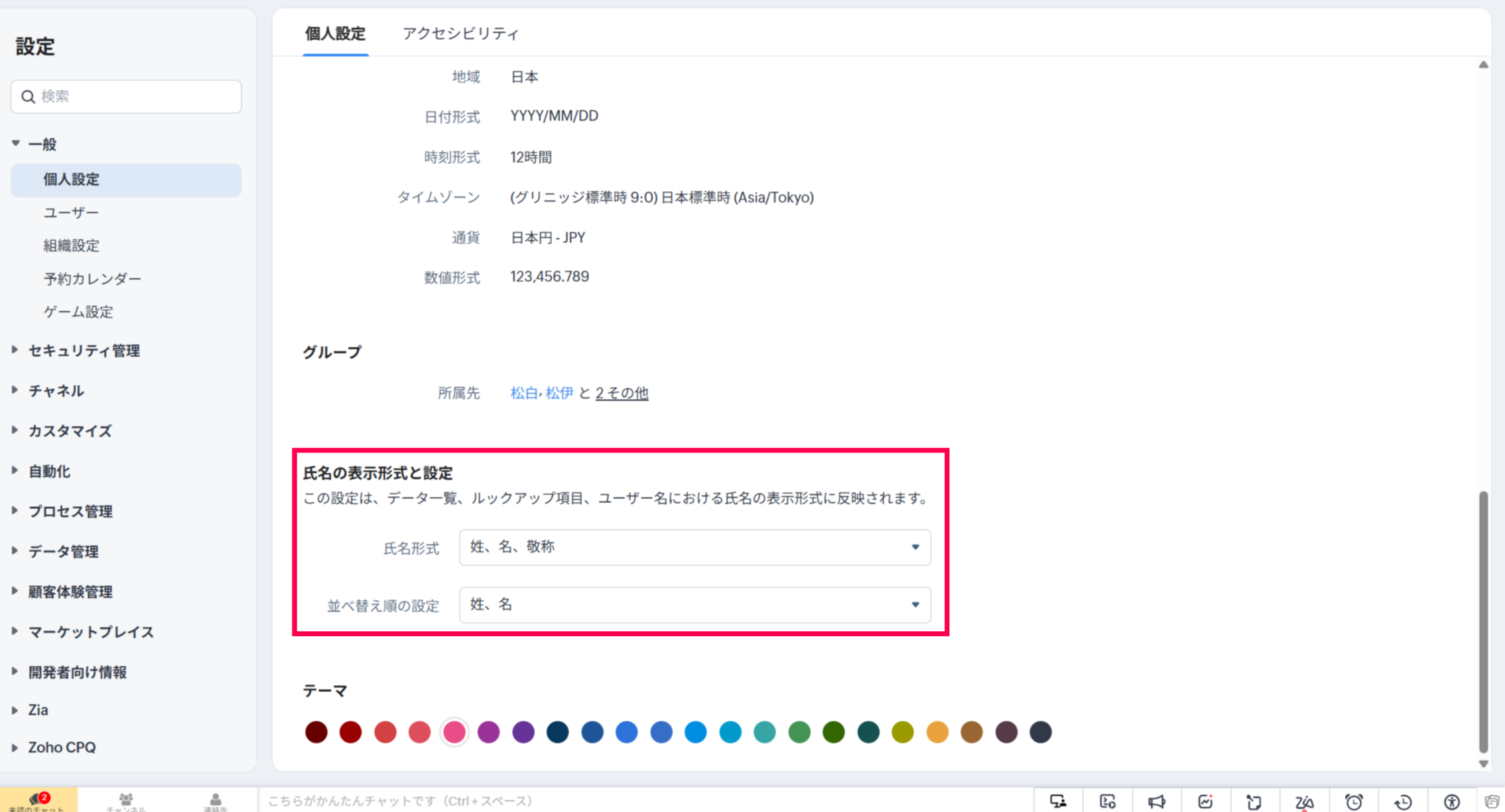 【Zoho CRM】組織のユーザーすべての氏名表示形式を一括で変更する方法はありませんか?