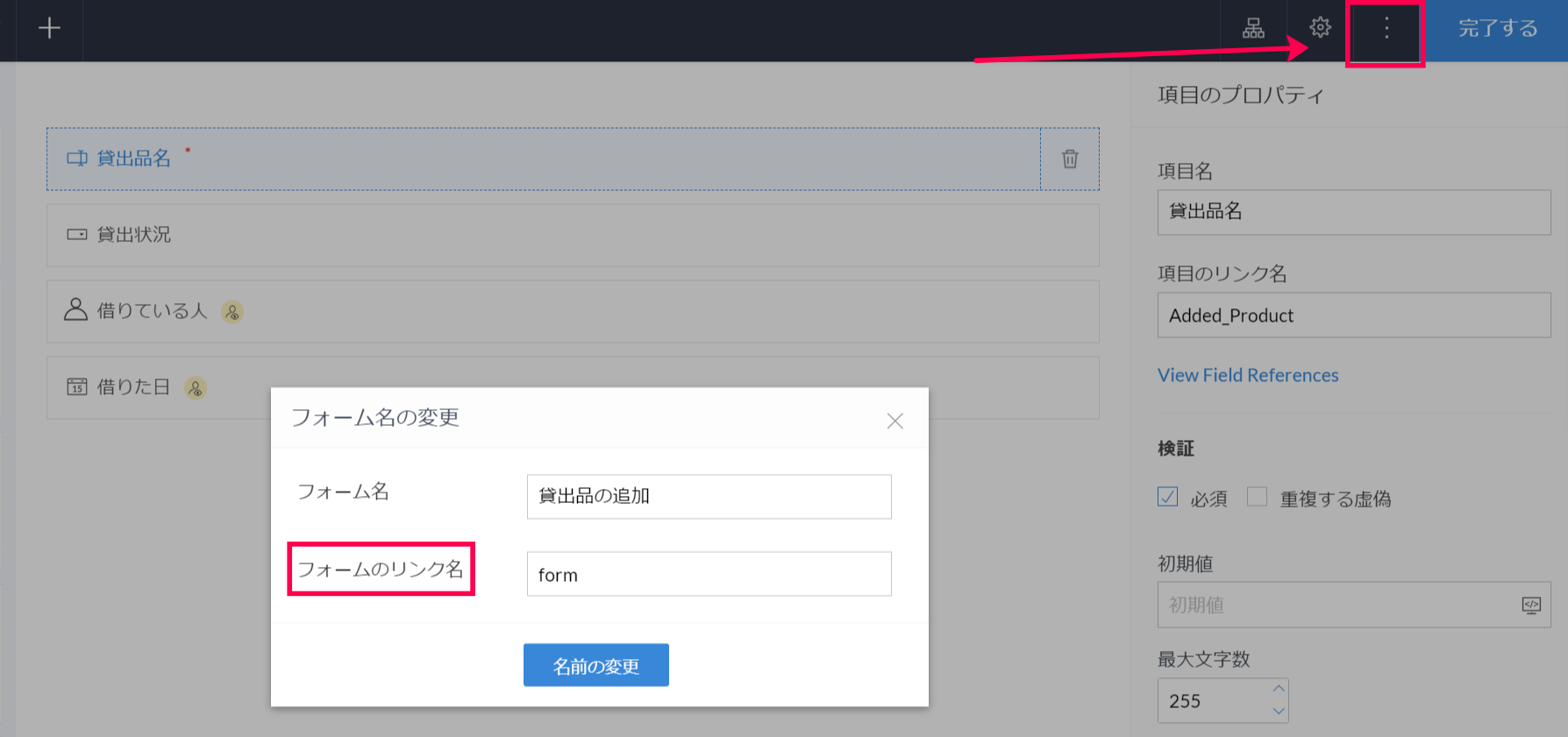本ページでは、「フォーム」「レポート」「項目」のリンク名を確認または編集する手順を説明します。