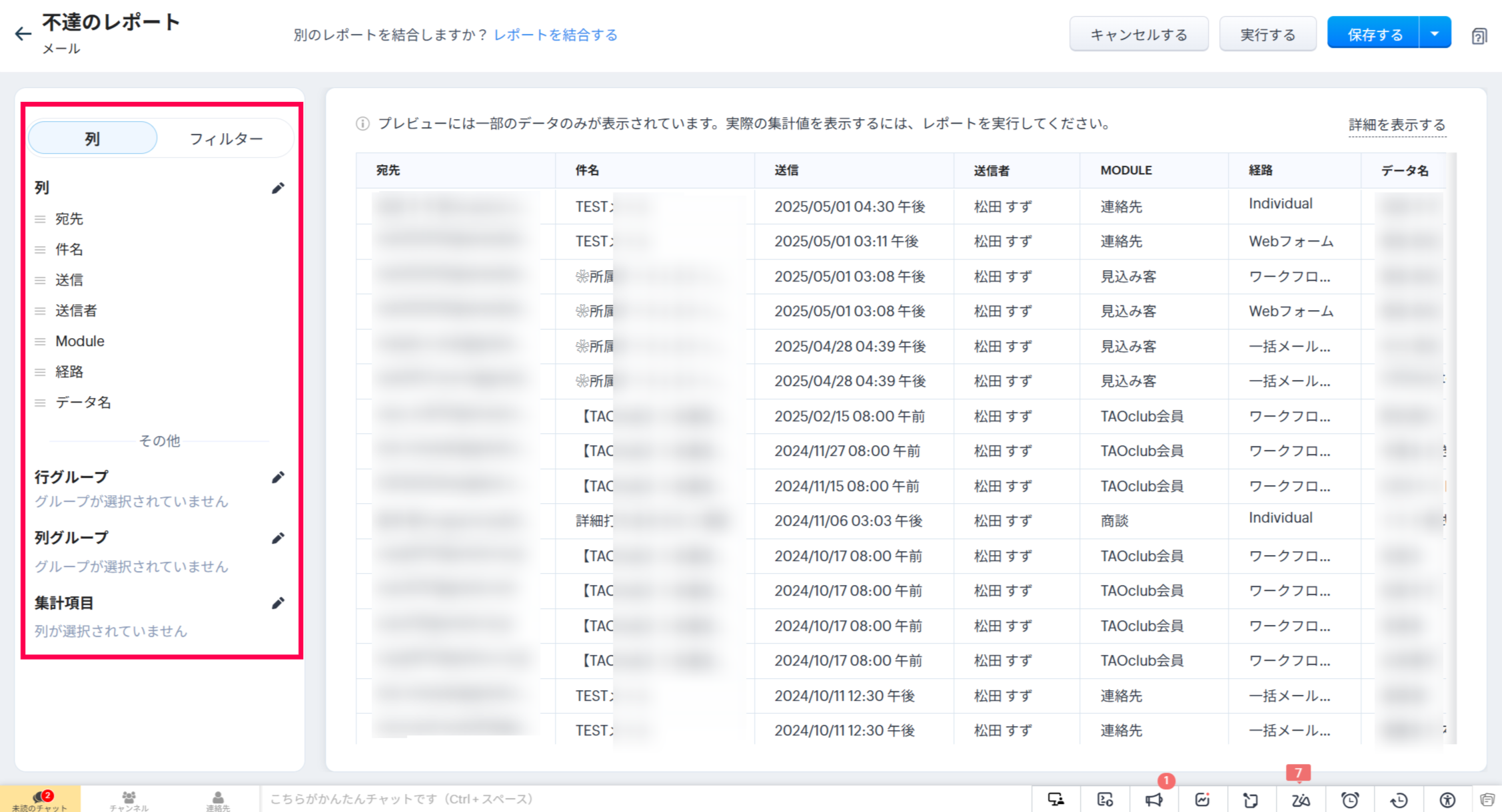 必要に応じて、表示項目のカスタマイズや列グループの作成、フィルターの設定などを行うことが可能です。