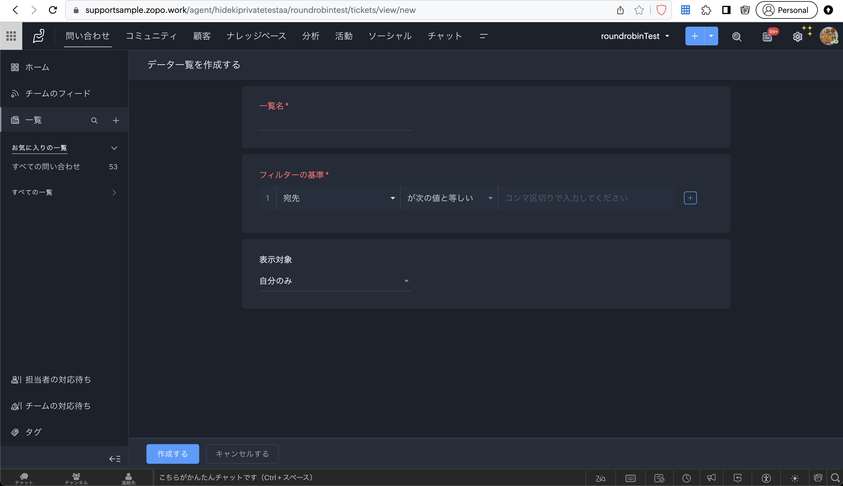サポート用メールアドレスごとにビューを作成していただければ、サポート用メールアドレスごとの対応状況を表示可能です。