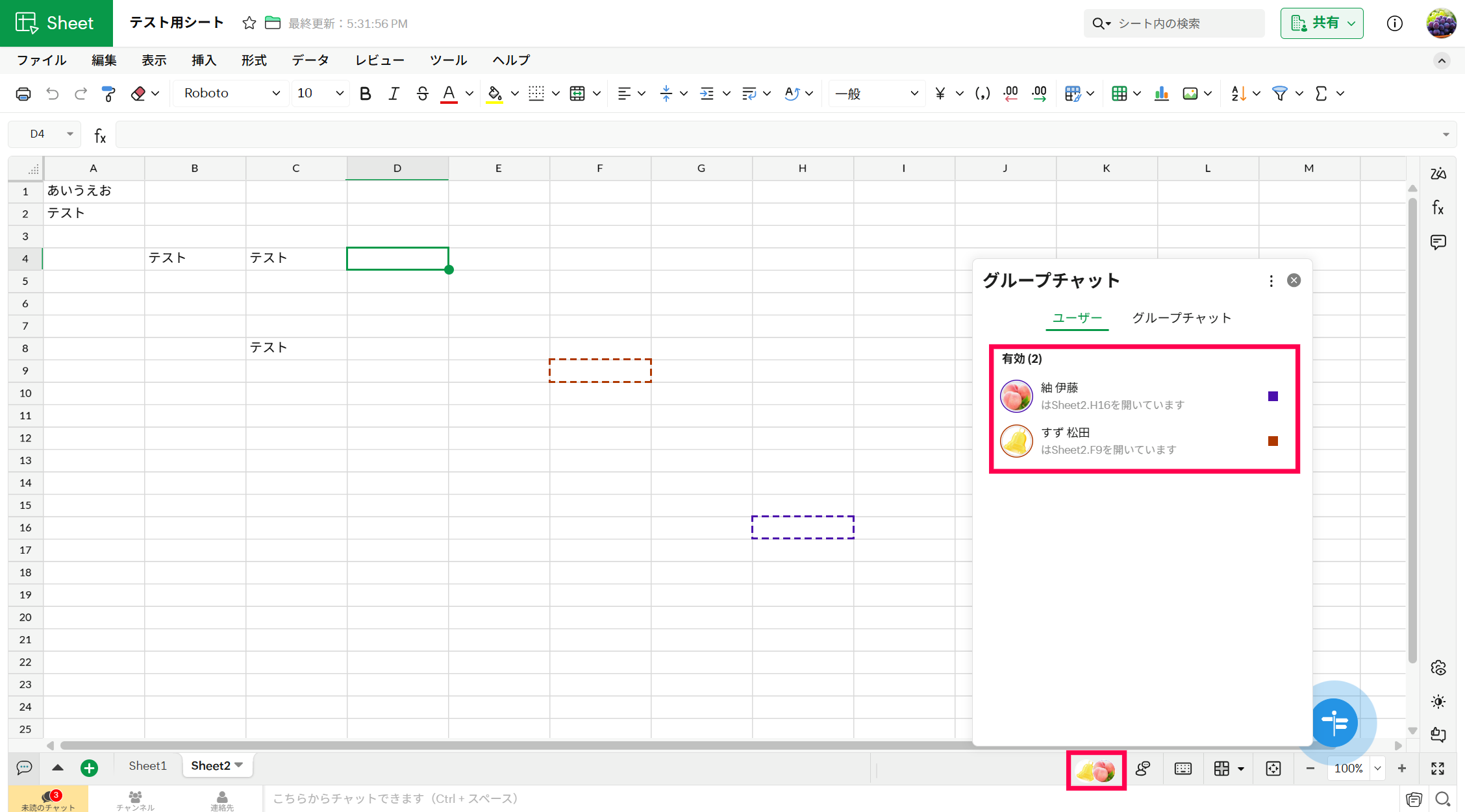 シートを同時閲覧中のユーザーは、シート画面の右下から確認することが可能です。