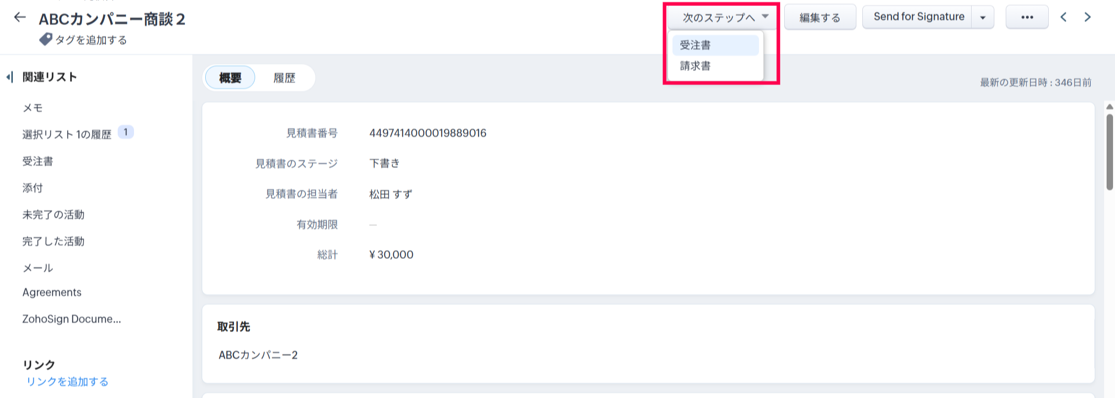 【Zoho CRM】見積書の内容をそのまま受注書にする方法はありますか?