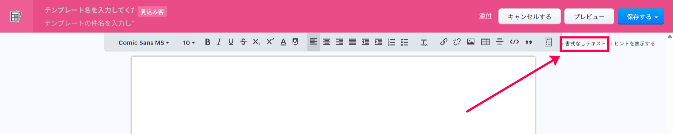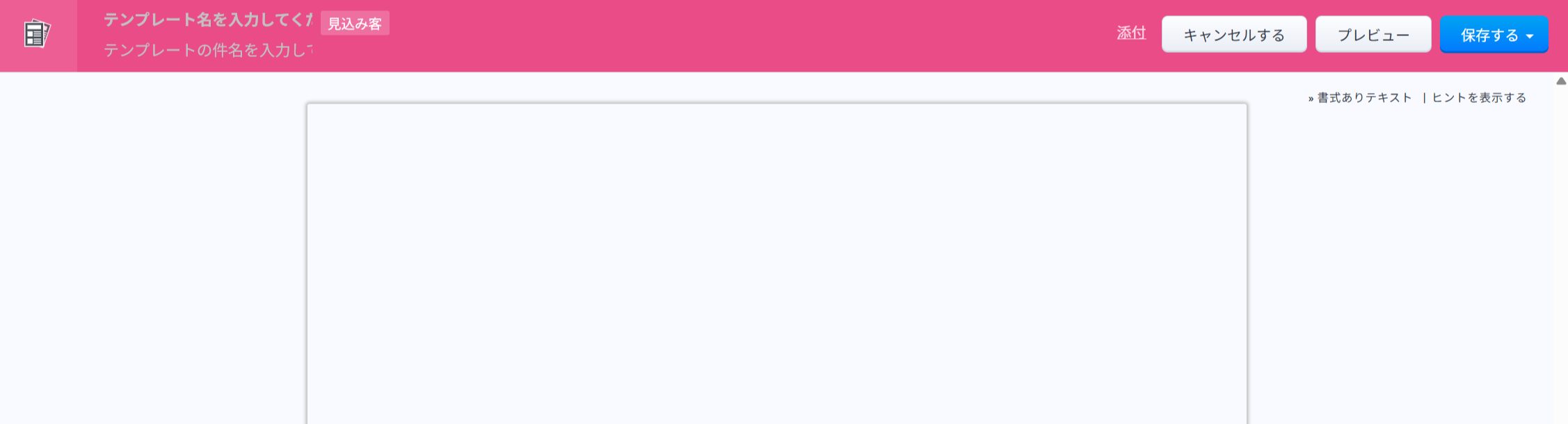 下記のようにツールバーが表示されなくなり、テキスト形式でテンプレートを作成できます。