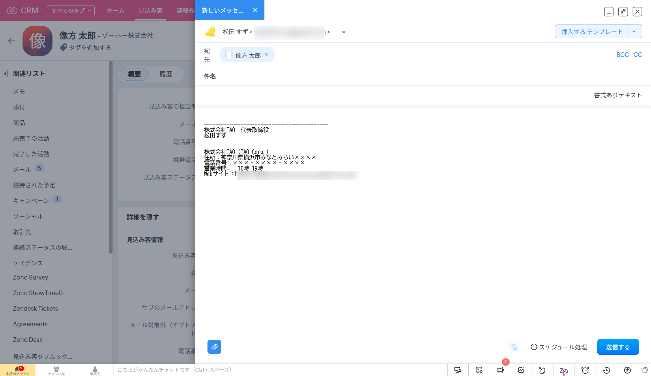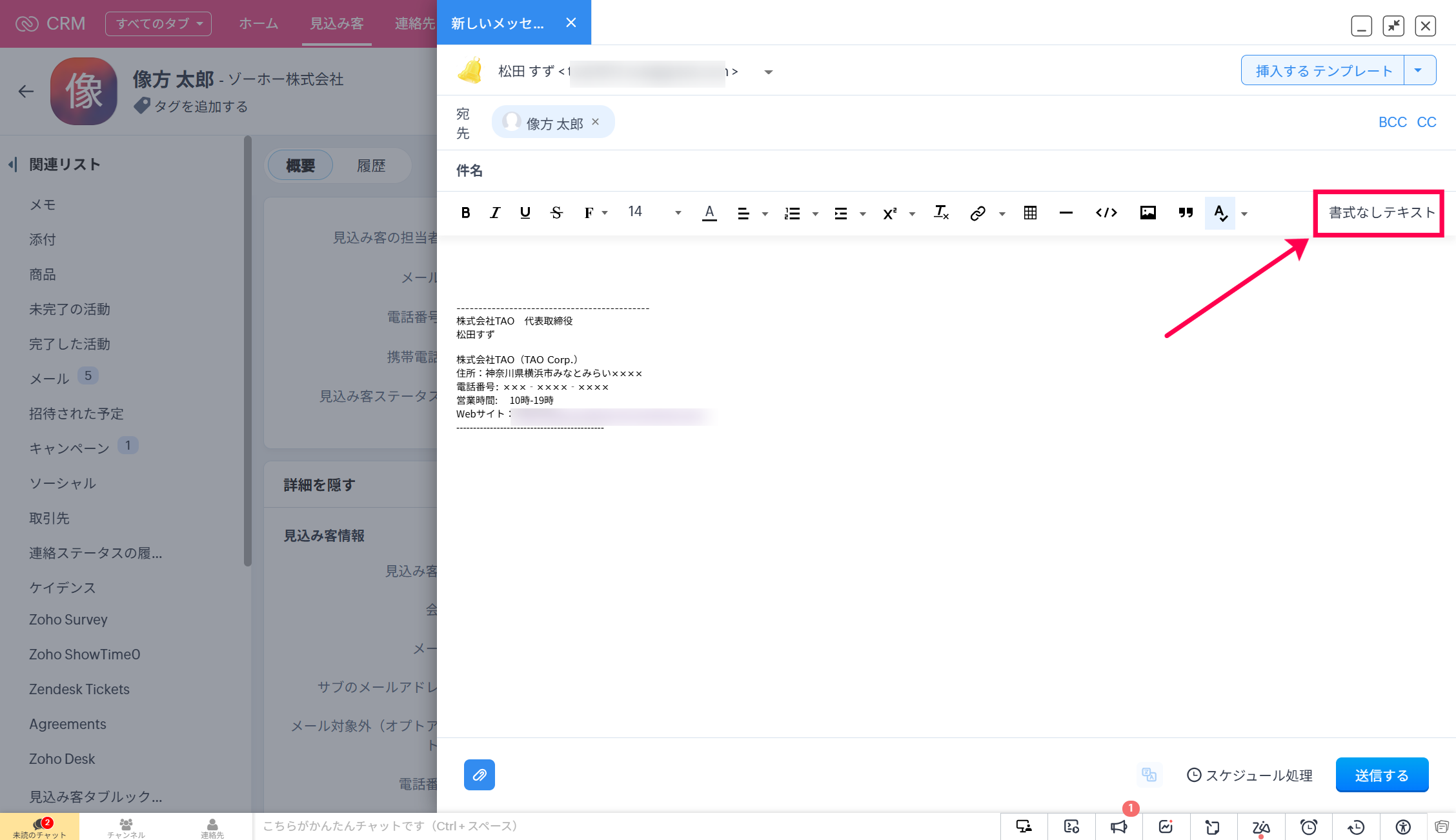 【Zoho CRM】個別メールをテキスト形式で作成する方法