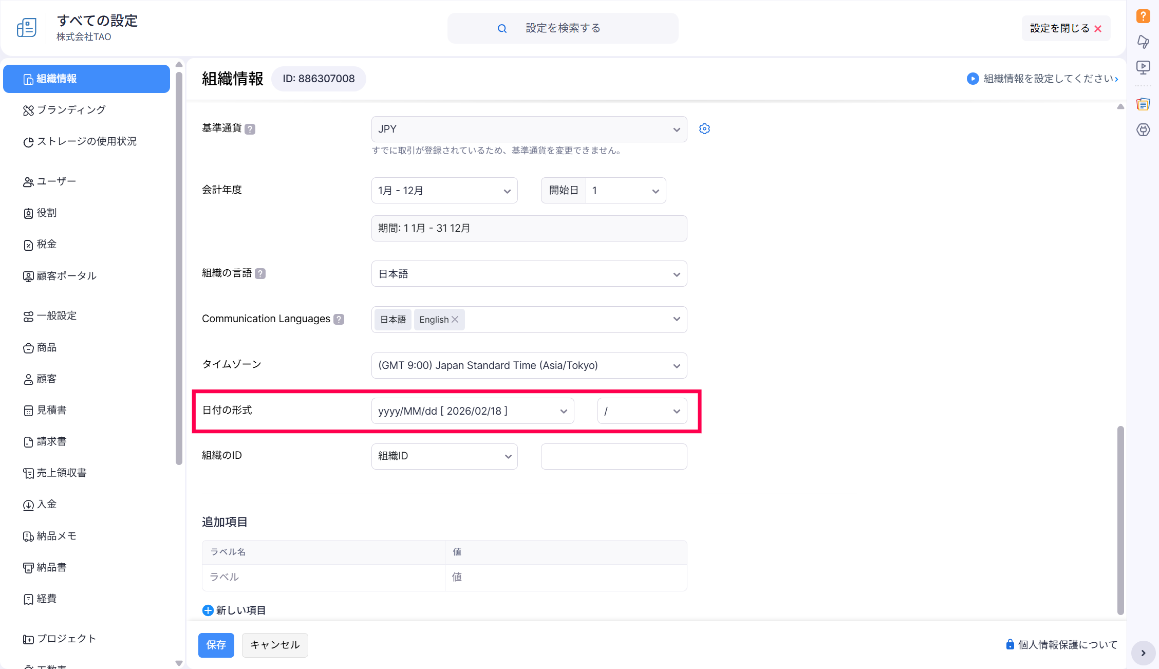 - 画面を下にスクロールし、「日付の形式」オプションで任意の形式へ変更が可能です。