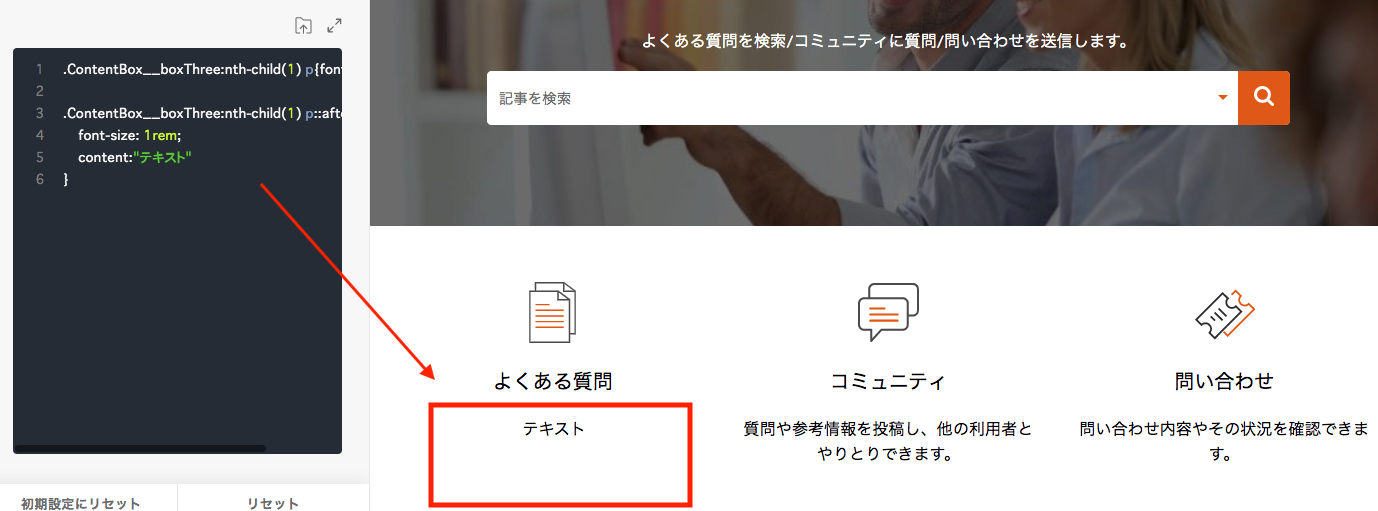 content:"テキスト"