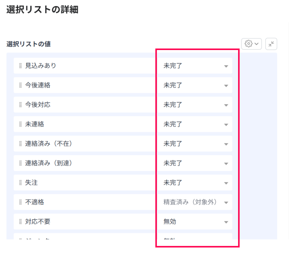 以下、見込み客ステータス項目のカスマイズ手順です。