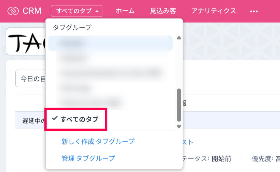 【Zoho CRM】任意のタブが画面上部に表示されません。