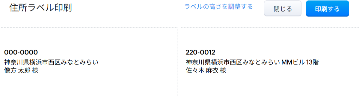 郵送用印刷ラベルで表示される項目は、ビューで設定されている表示項目に依存します。