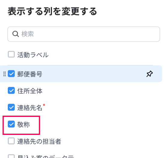 郵送用印刷ラベルを作成するビューに「敬称」項目を表示することで可能です。