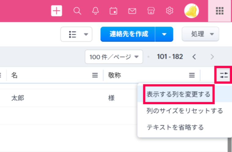 ビューに表示する項目の追加や並び替えは、ビューの画面右にある「表示する列を変更する」オプションから可能です。