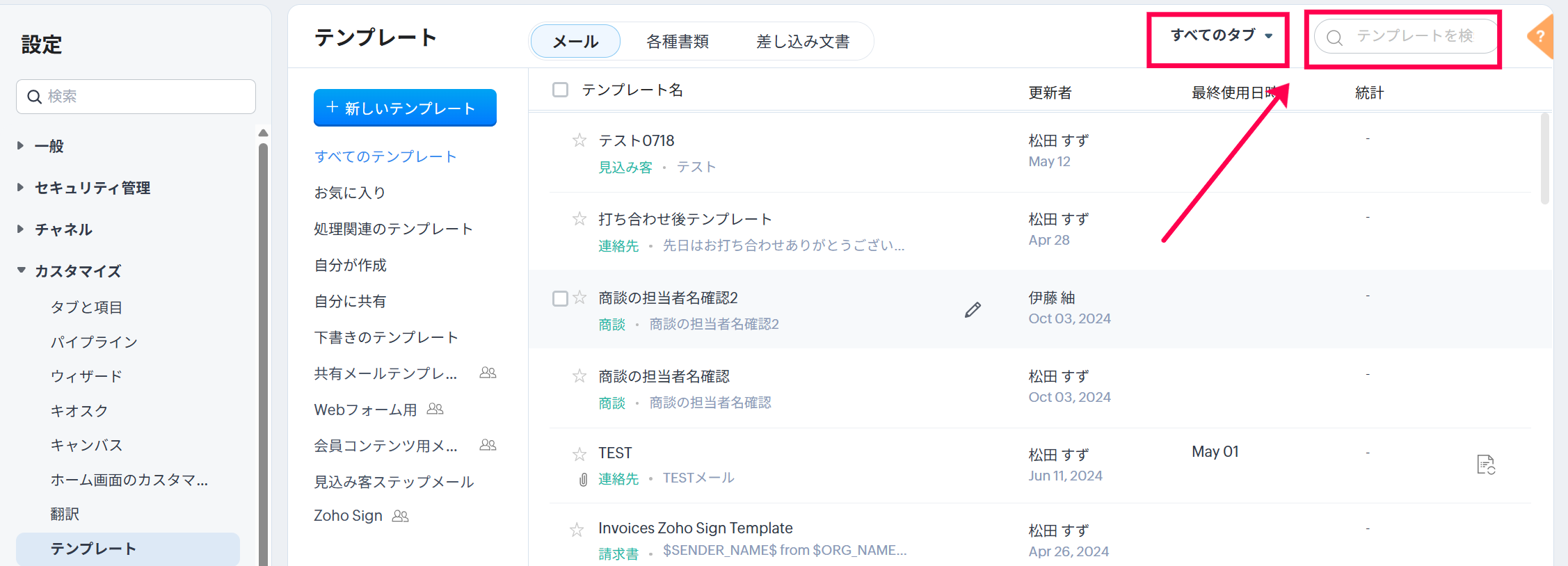 【Zoho CRM】作成したメールテンプレートが見つからない場合の検索方法