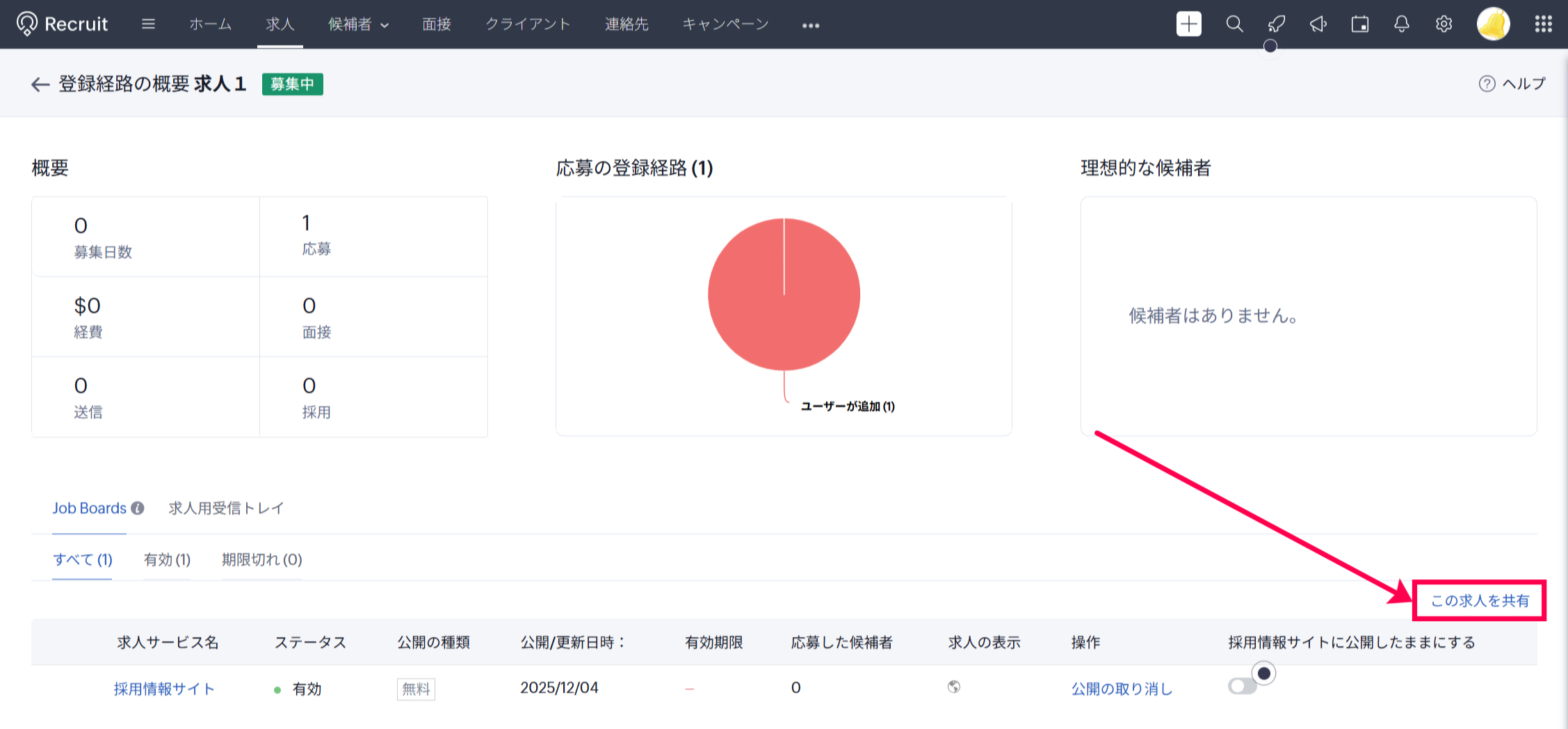 「この求人を共有」リンクをクリック