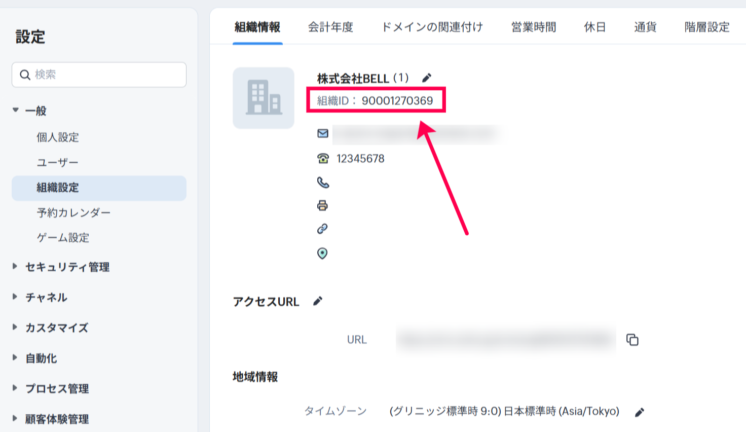 なお、組織のIDは、設定>一般>組織設定画面内でご確認いただけます。